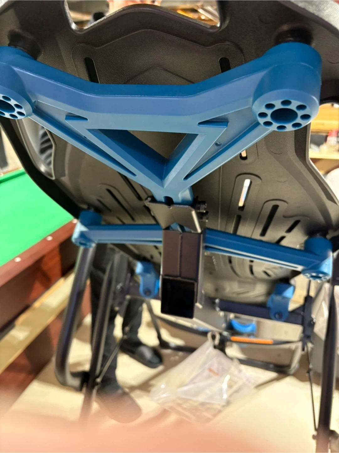 The part marked with a red X in the photos (center support/accessory) is NOT included.
