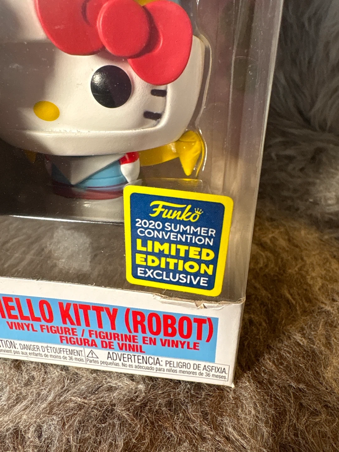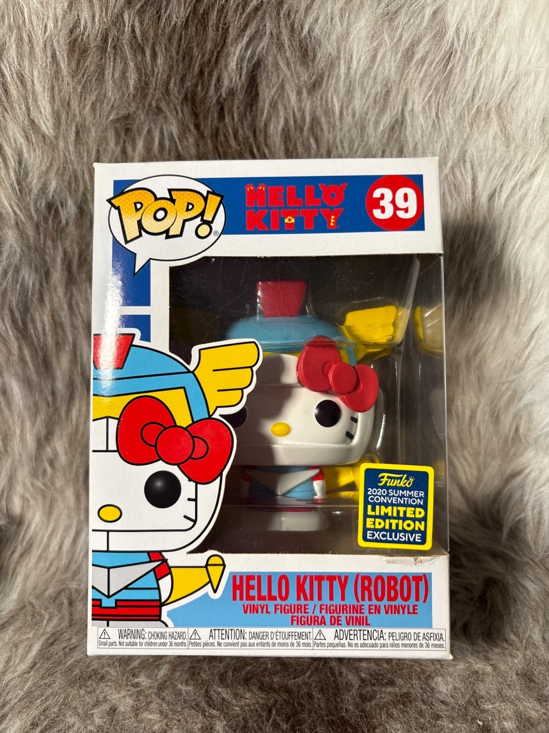 This is a Funko Pop! vinyl figure of Hello Kitty as a robot #39. It's a 2020 Summer Convention Limited Edition exclusive. Comes in the original box with minor wear and tear as seen in the photo.