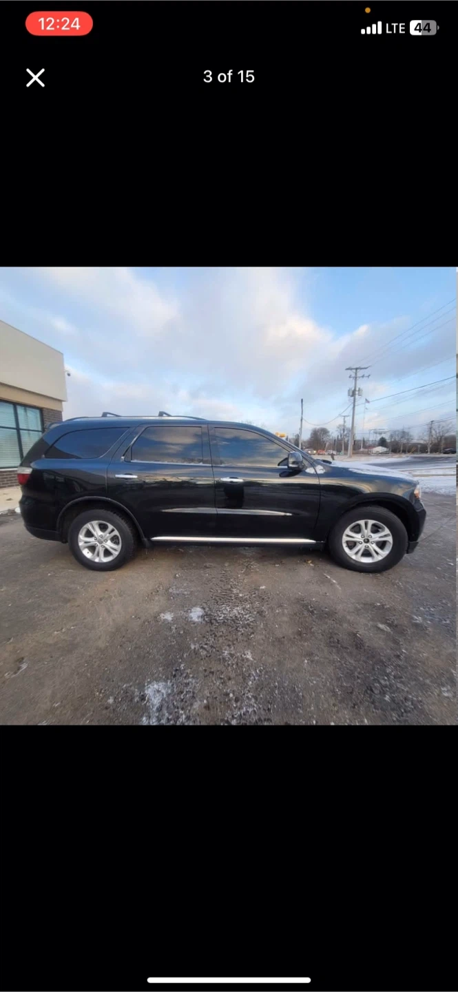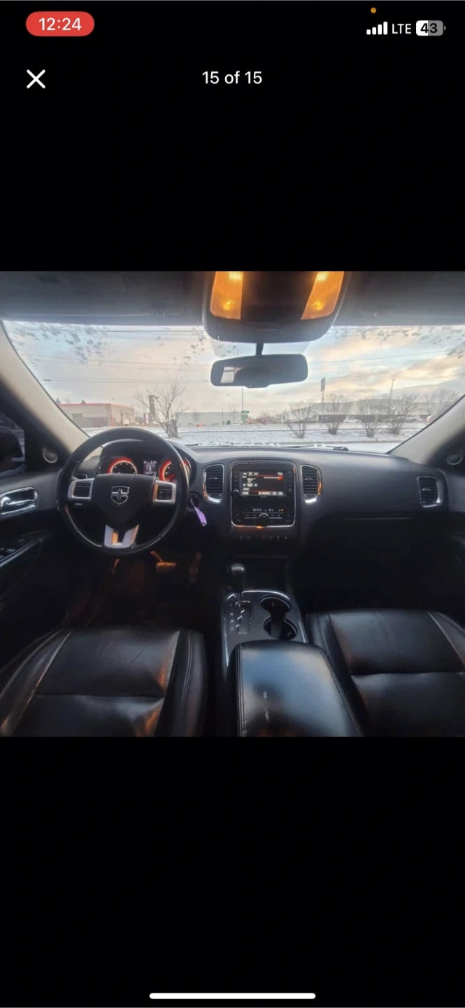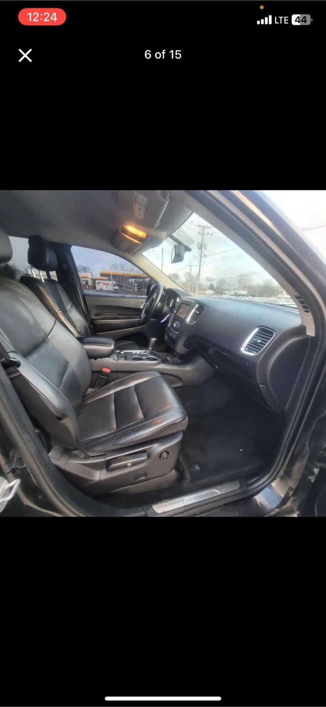 This is a black Dodge Durango SUV. It features leather seats and a modern dashboard. Plenty of room for passengers and cargo!