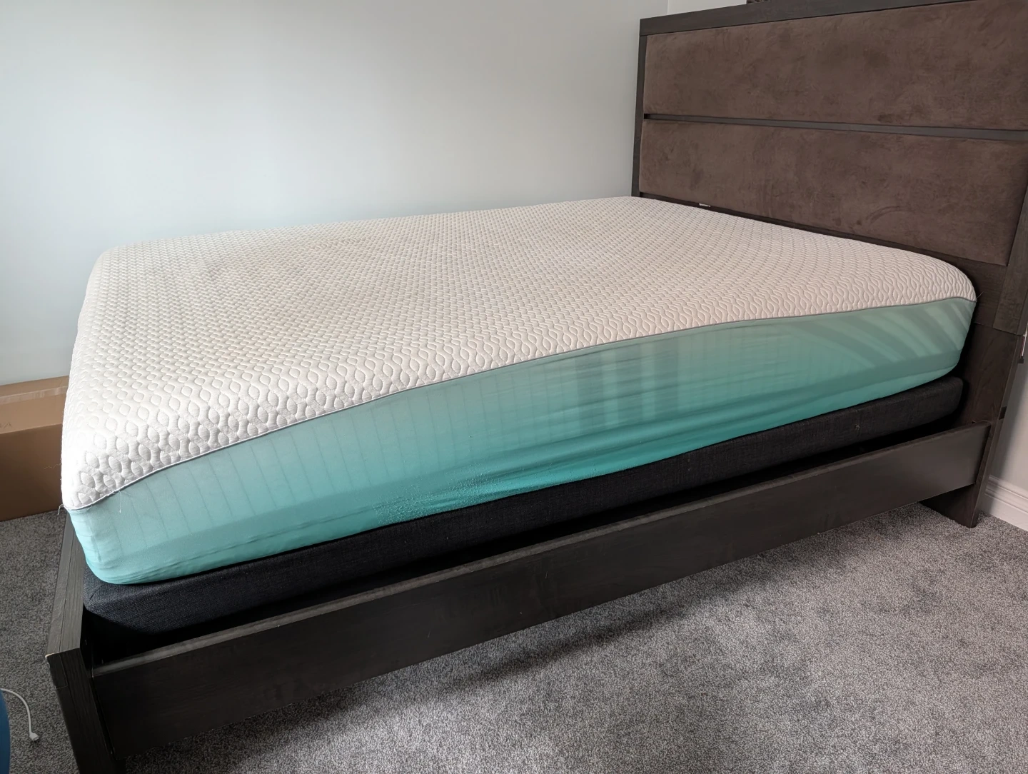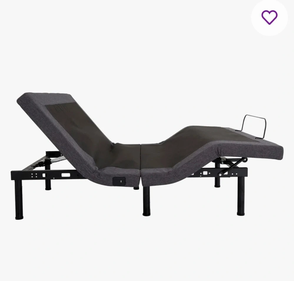 This adjustable bed frame base offers customizable comfort. It's upholstered in a dark grey fabric. Great for improving sleep positions and reducing snoring!