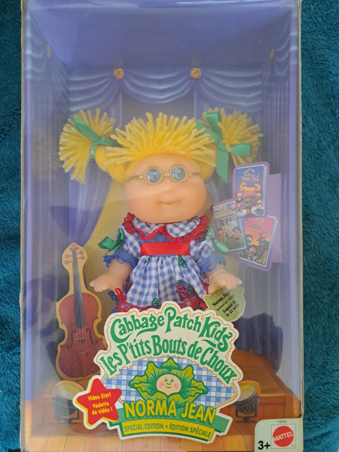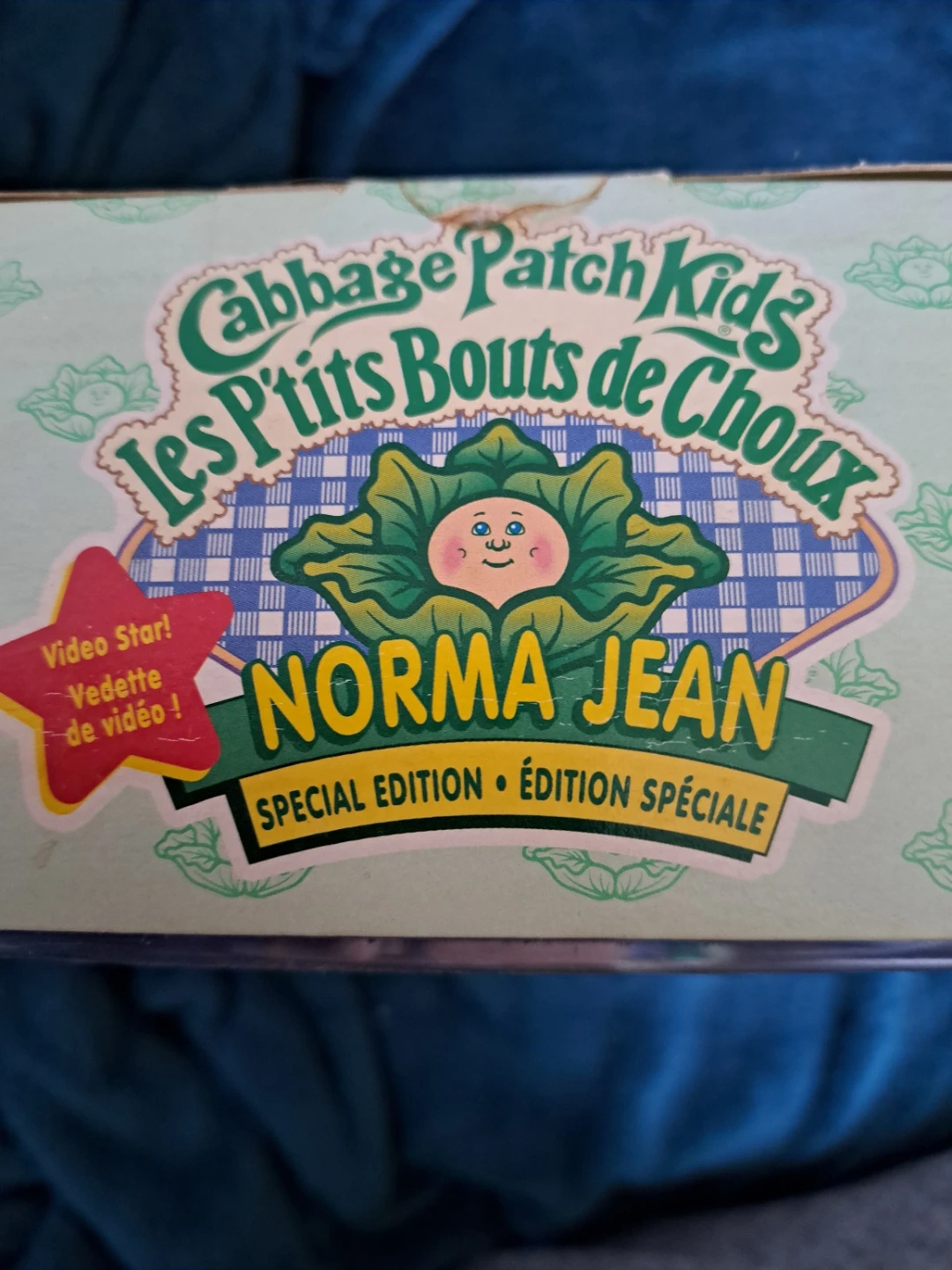 Selling a Cabbage Patch Kids doll, Norma Jean Special Edition! This adorable doll comes in its original box and is ready for a new home with a collector or a child. The box has a Mattel logo and indicates it is suitable for ages 3+