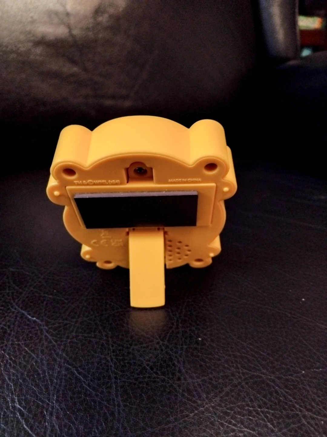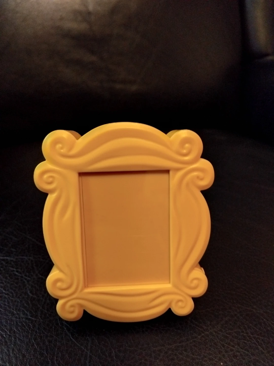This is a yellow photo frame inspired by the iconic Friends TV show. It's designed to hold a small picture. Comes with a stand and magnet on the back. It speaks when button pressed.