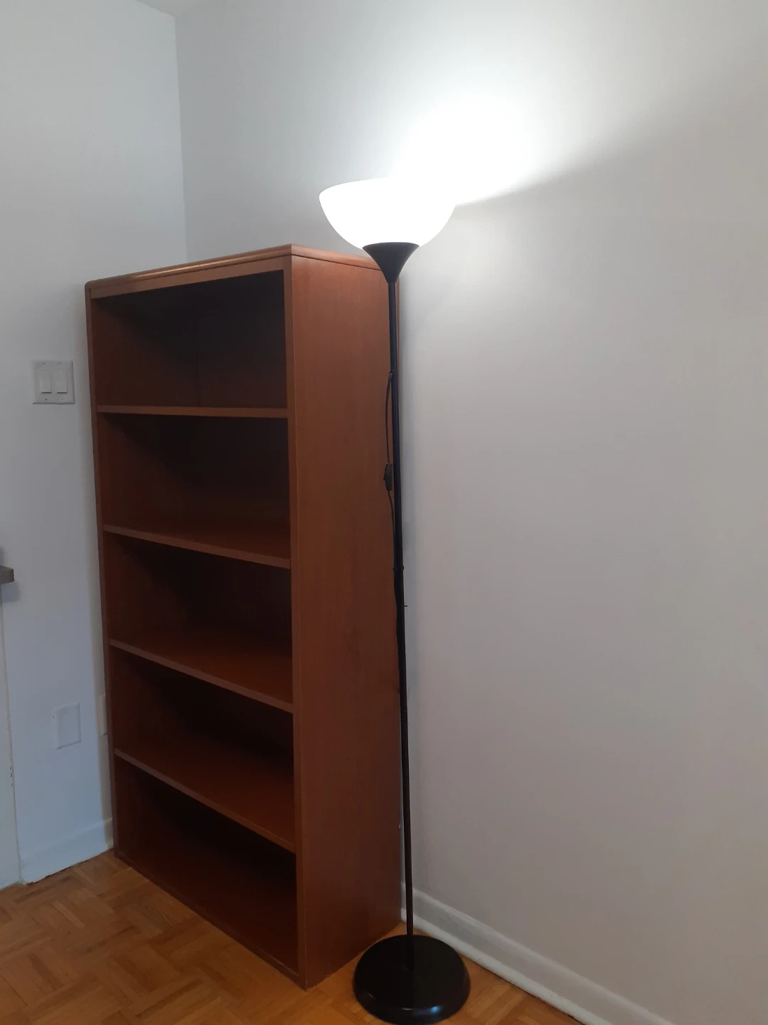 This is a 5-shelf wooden bookshelf with a warm brown finish. It's sturdy and ready for your books or decor. A simple, classic piece for any room!