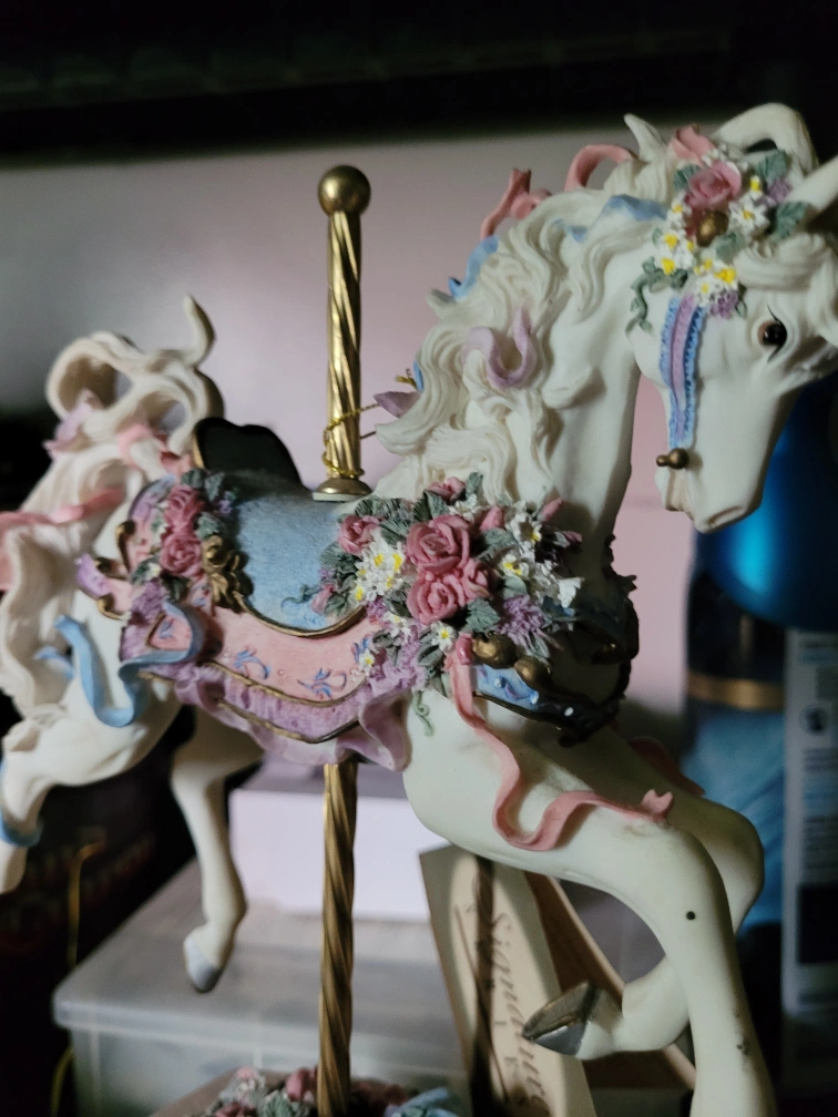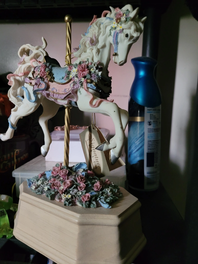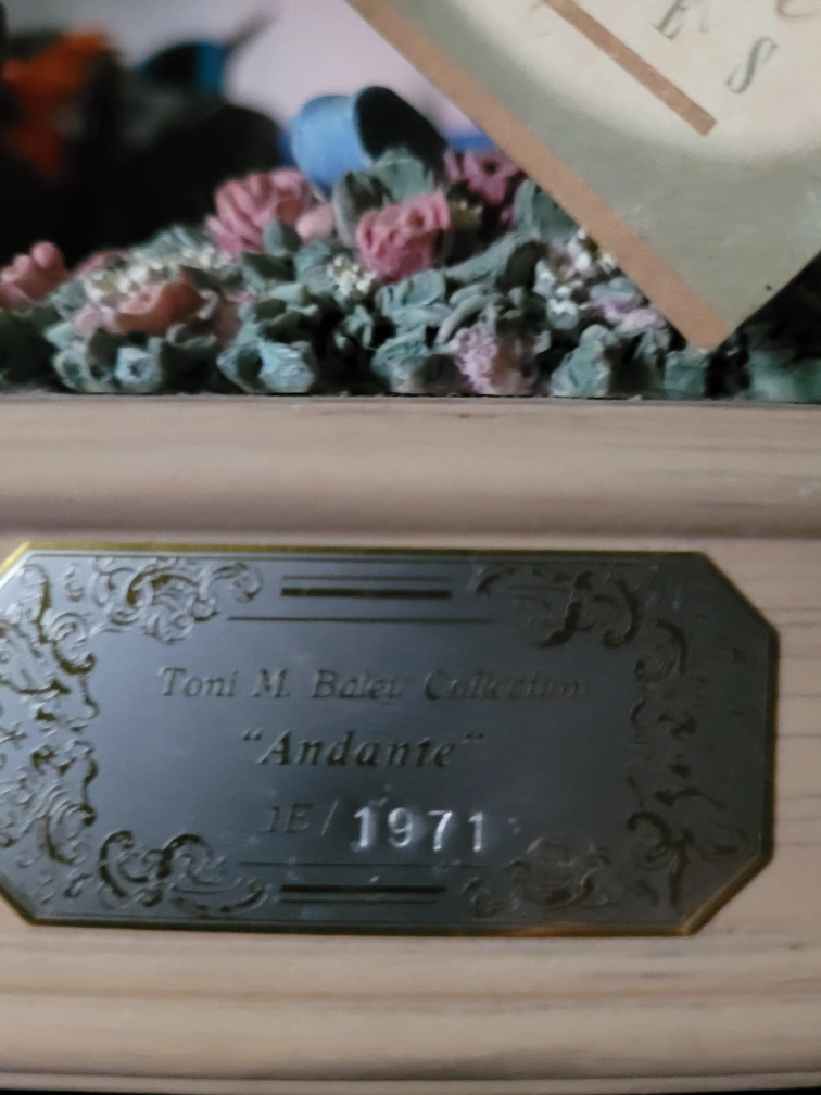 This is a lovely Toni M. Bailey Collection "Andante" carousel from 1971. It's a Westland item, number 5122, and plays Canon in D. A beautiful piece for any collector!