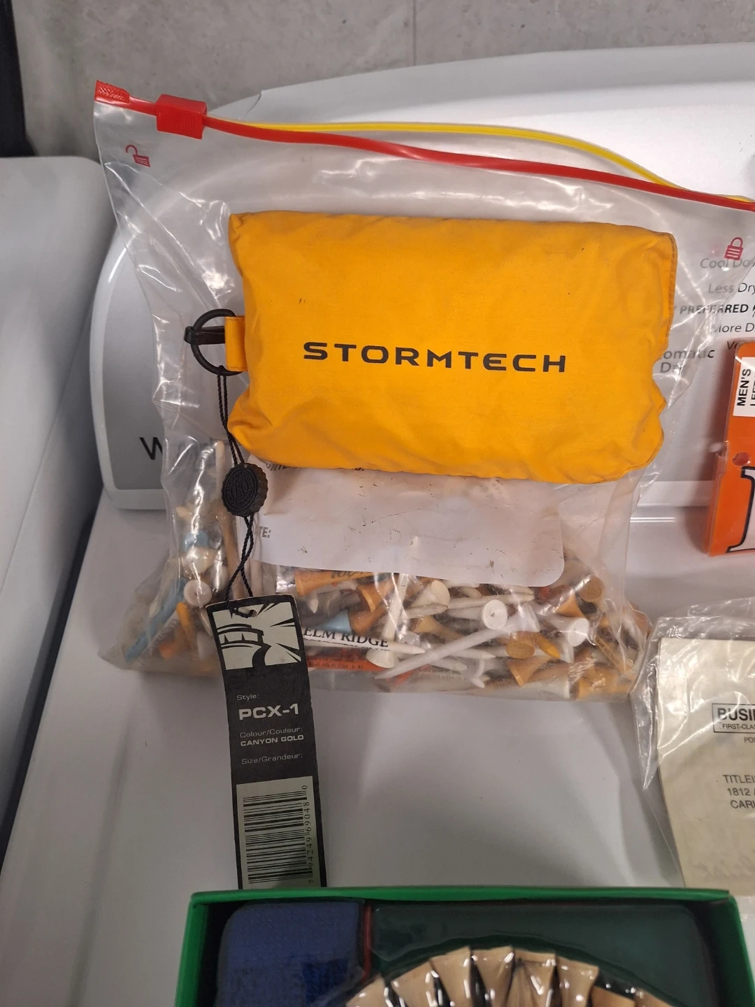 This bundle includes various golf accessories, featuring tees, markers, a left handed golf glove, turf tools, club cleaner, jacket, brand new balls. Perfect for any golfer looking to stock up on essentials!