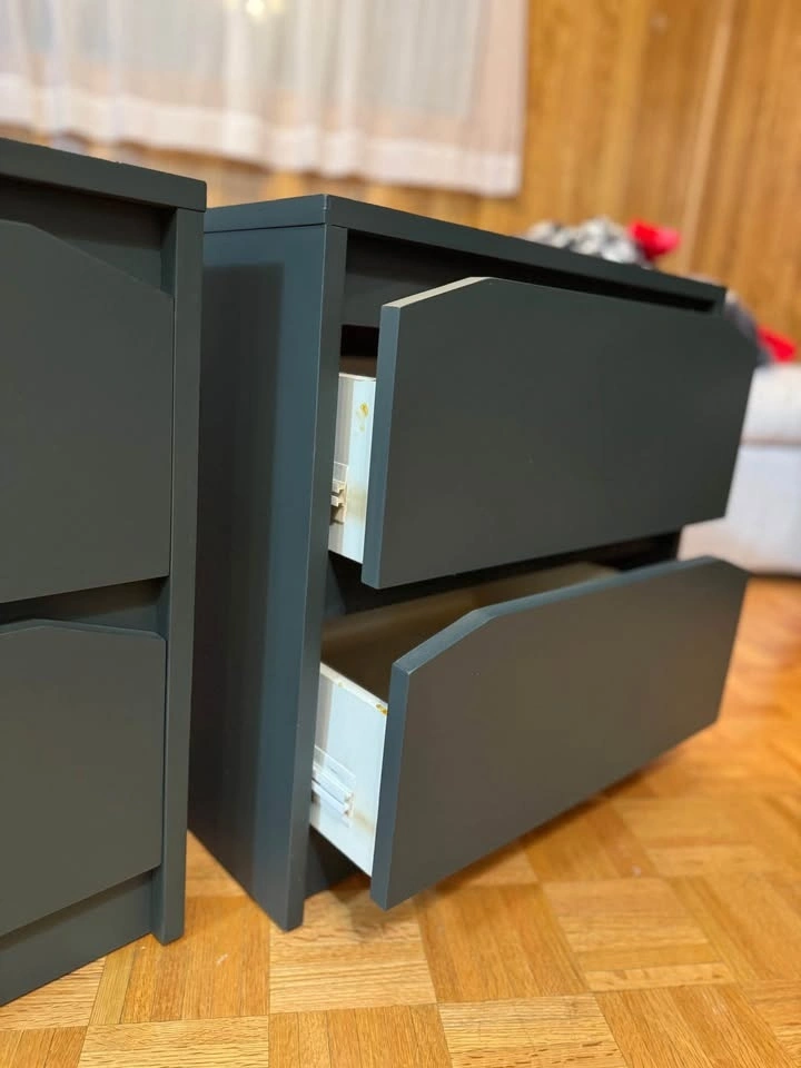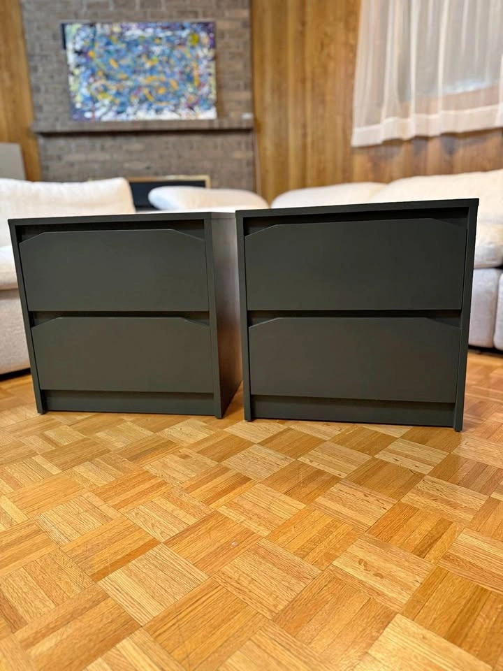 Freshly refinished Modern Dark Green Nightstands – Set of 2