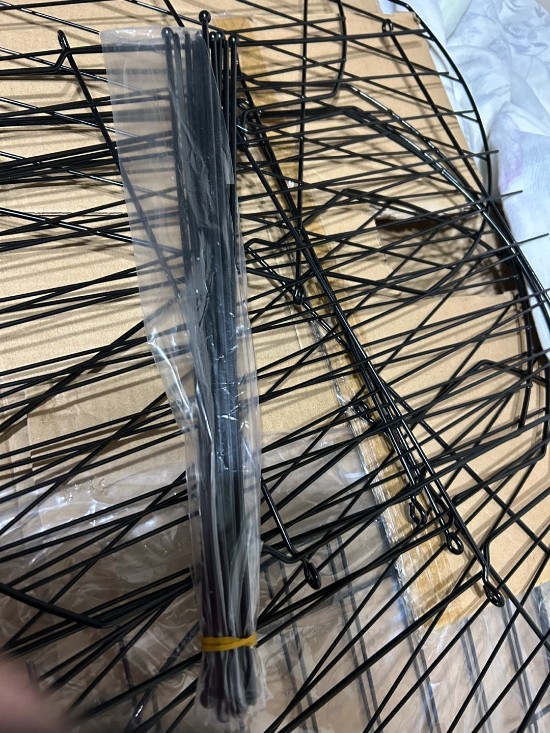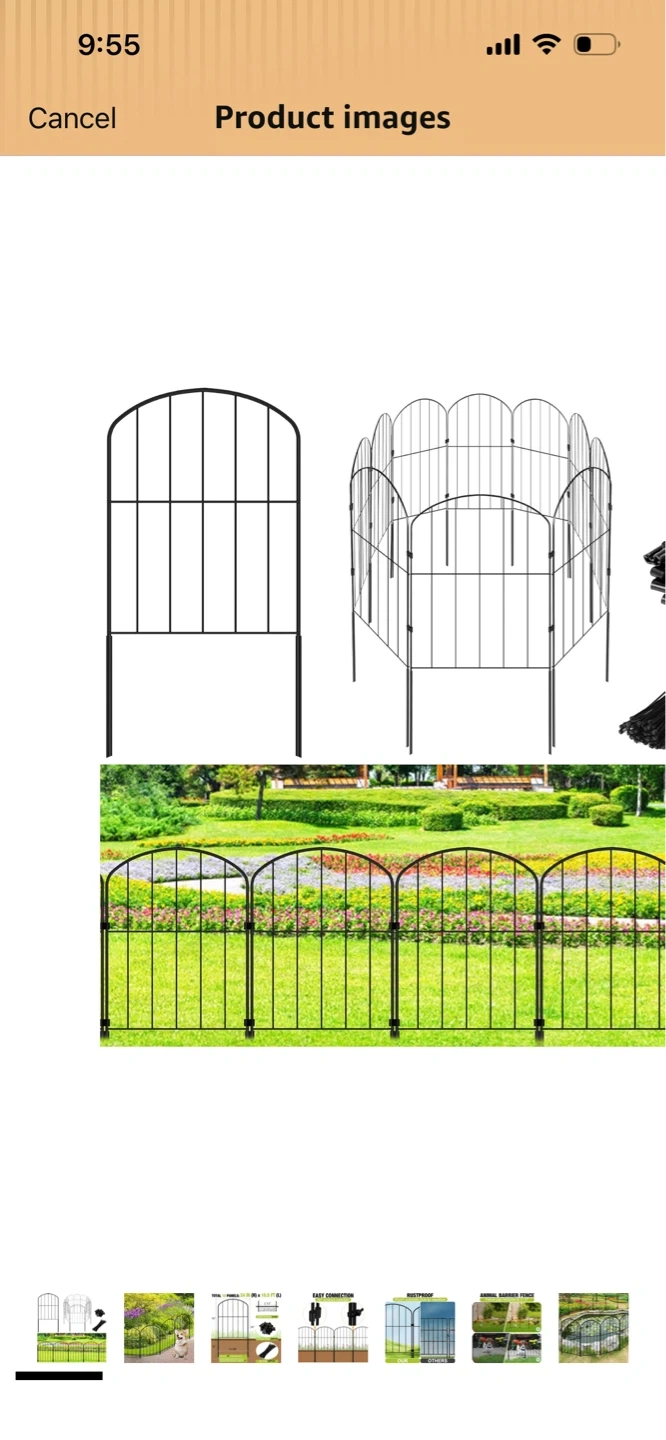 Set of new 10 pcs 14x12 decorative black metal garden edging fence panels. Each panel features an arched top design and interlocks with others. Made of durable metal wire construction.