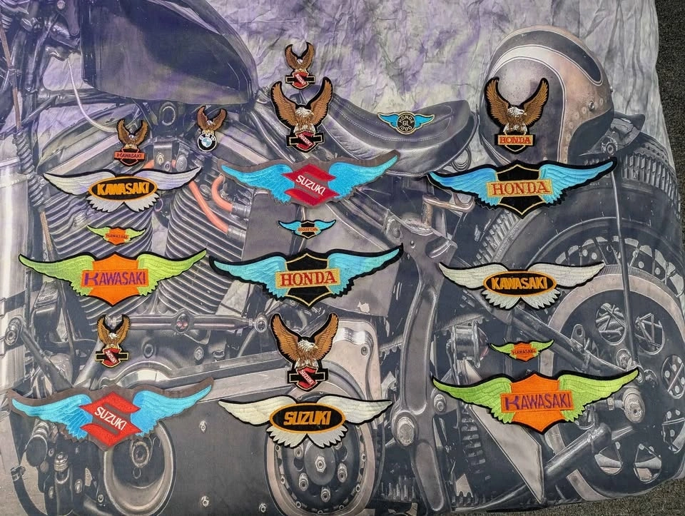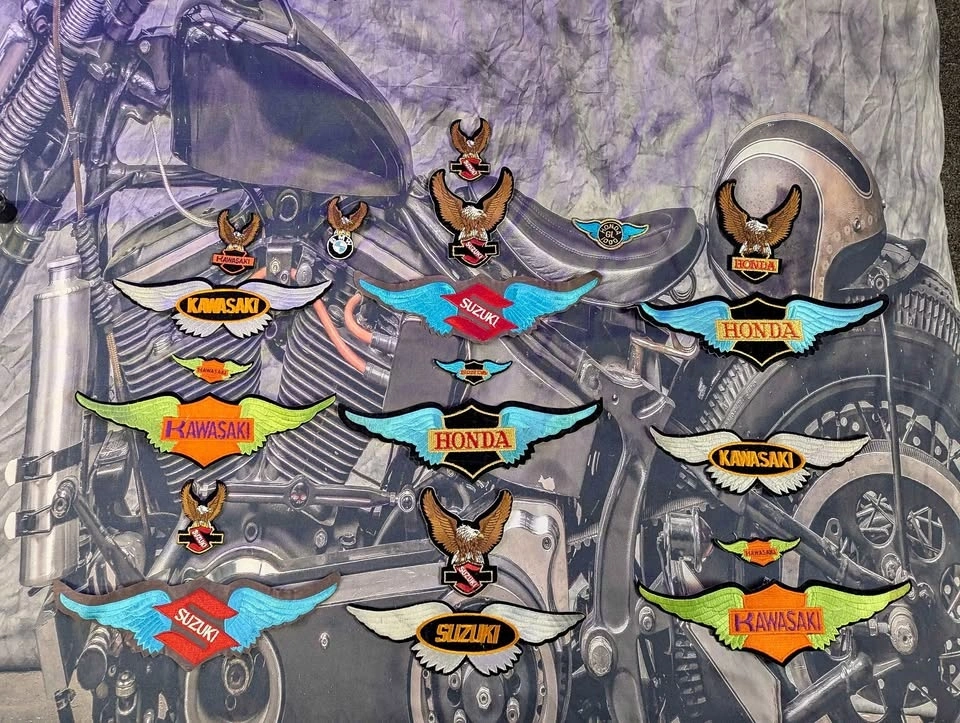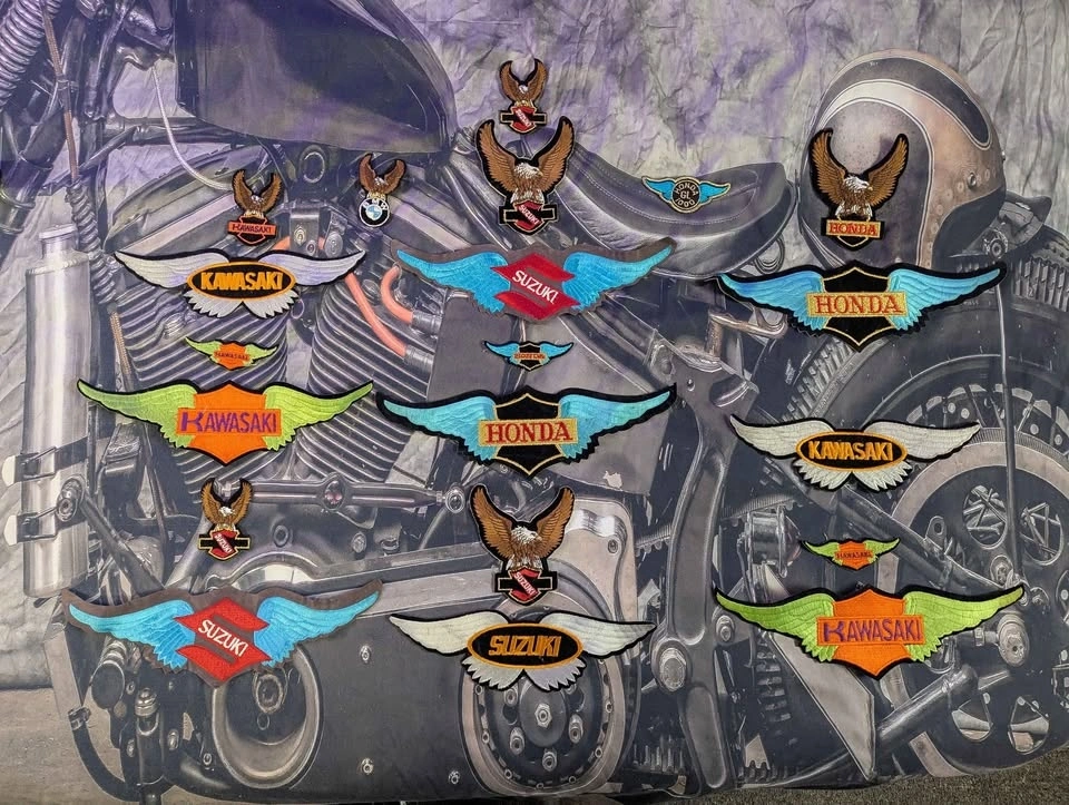 Motorcycle Embroidered Sew On Patches - Honda, Yamaha, Suzuki, K