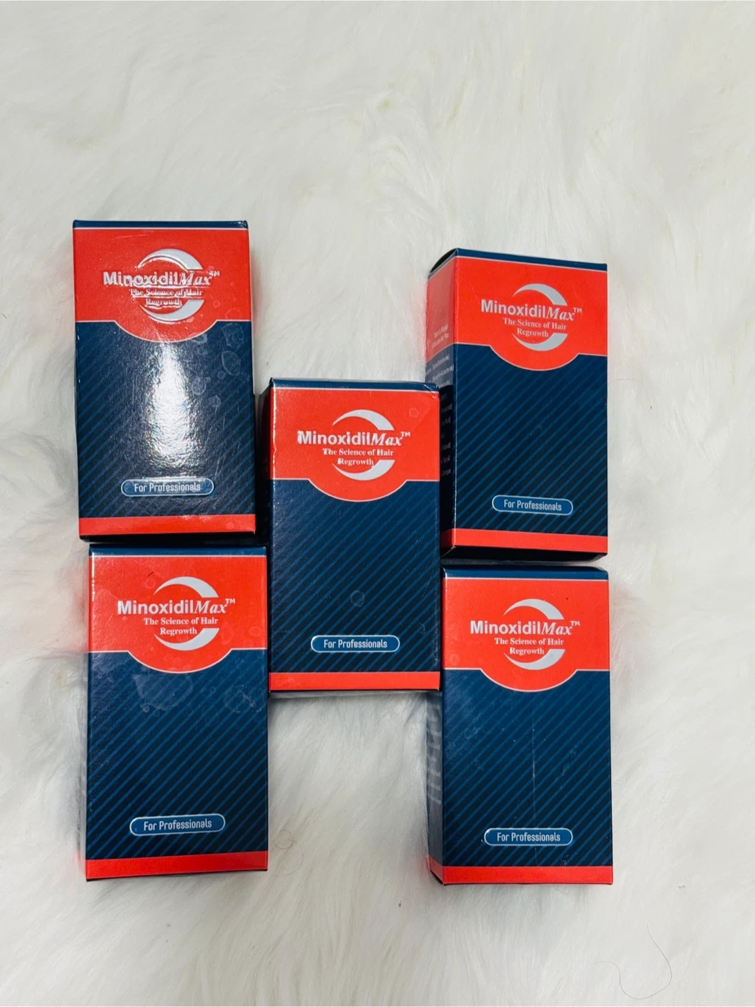 This listing includes five boxes of MinoxidilMax, designed for hair regrowth. It's formulated 'The Science of Hair Regrowth' and is intended for professional use. This product targets hair thinning and loss.