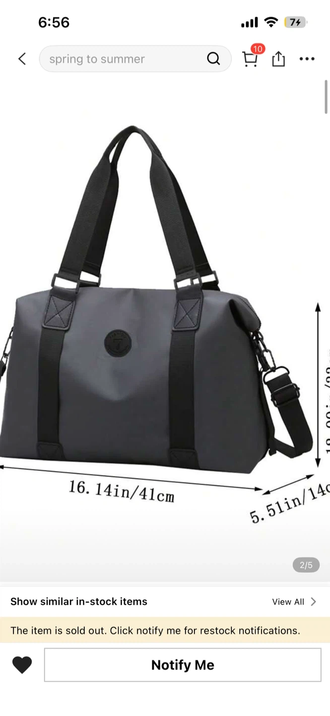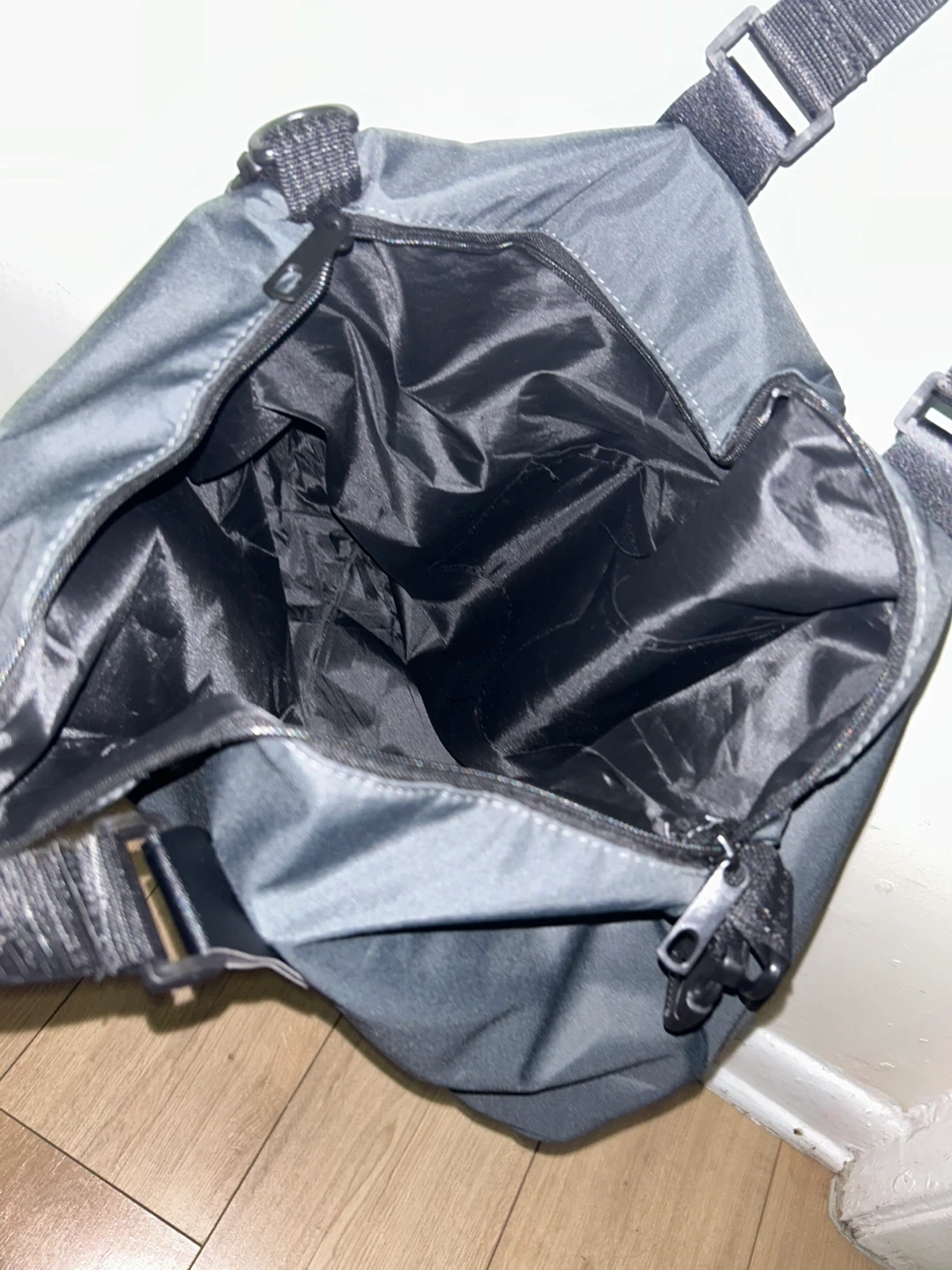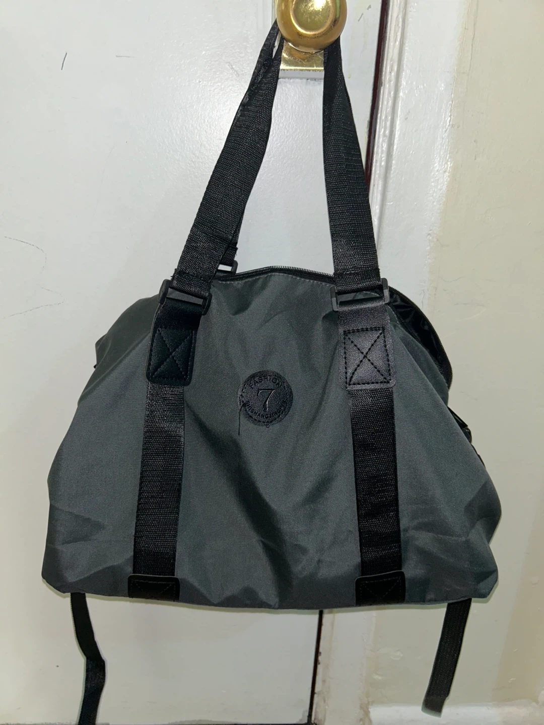 Selling a gray duffel bag from Fashion Handbags! It's in great condition and ready for your next trip to the gym or a weekend getaway. The bag measures approximately 16.14 inches in length, 10.03 inches in height, and 5.51 inches in width.