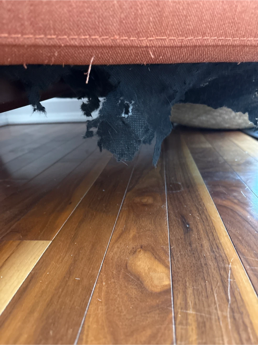 Structurally solid and sturdy. Would benefit from a clean or reupholstery if desired.