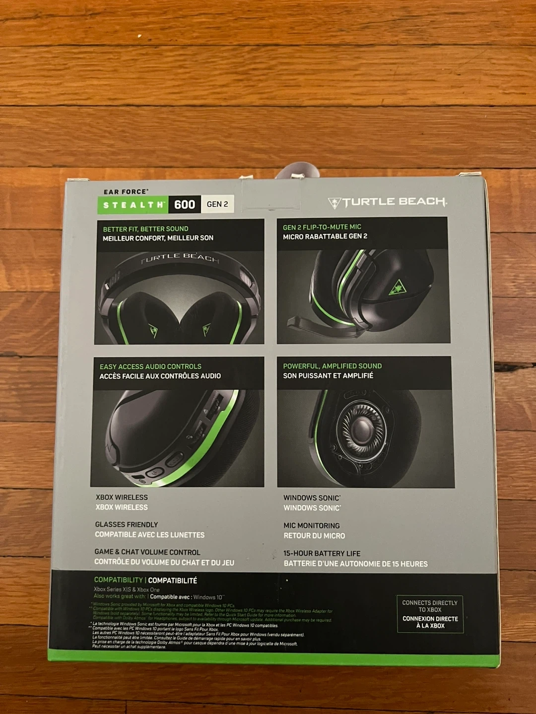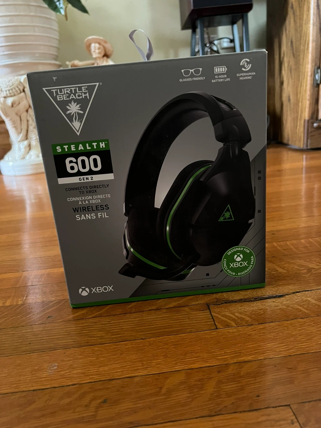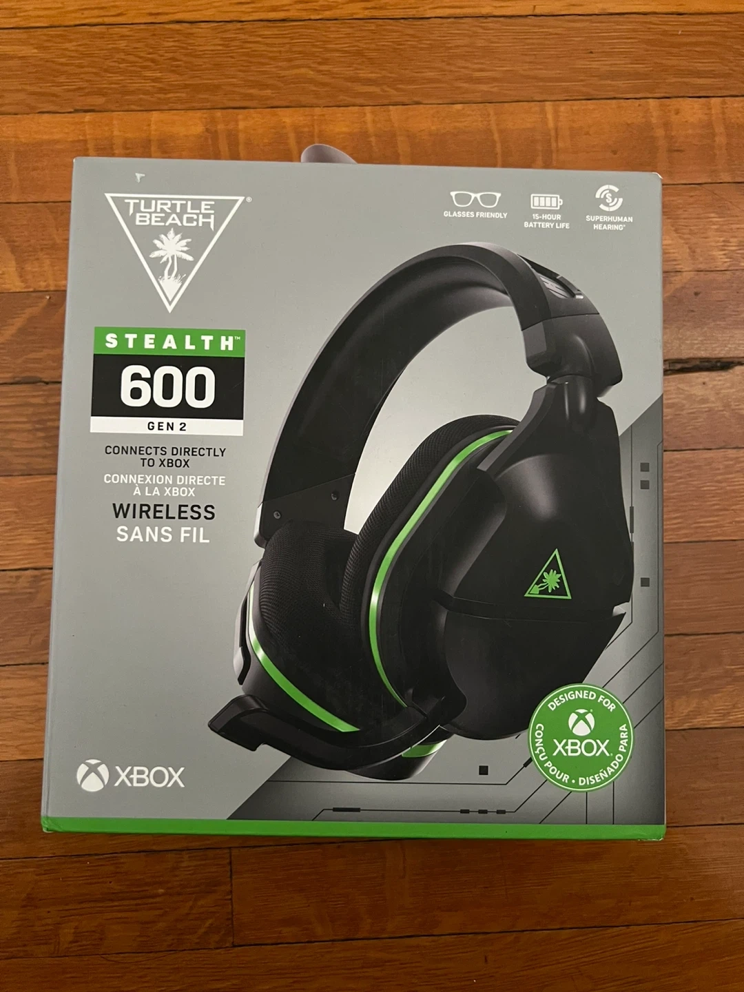 This is the Turtle Beach Stealth 600 Gen 2 wireless gaming headset. It's designed for Xbox consoles and offers a 15-hour battery life. The headset features glasses-friendly earcups and mic monitoring.