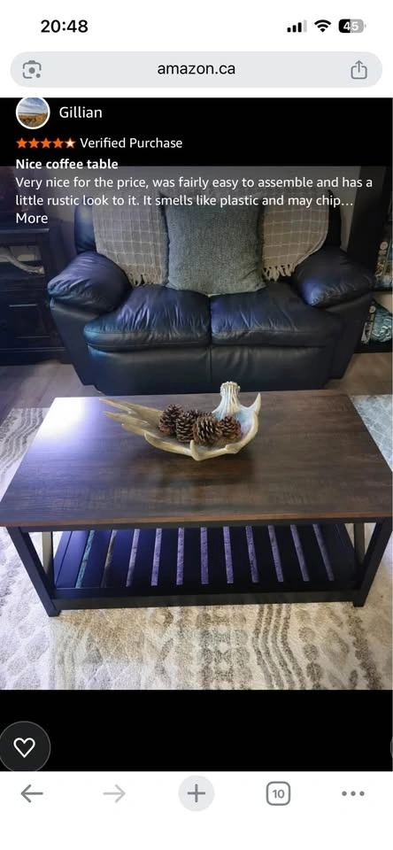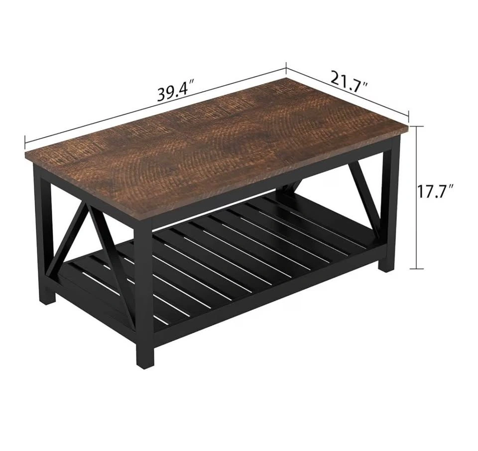 Brand-new coffee table, still in its original box with all parts and hardware. Dimensions are in one of the photos. The top surface is dark brown, almost black (black walnut color). I included one photo from the review section of a similar product on Amazon. The box is heavy and requires 2 people or 1 if you're strong enough. Cash only. Let me know if you’re interested!