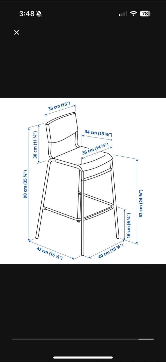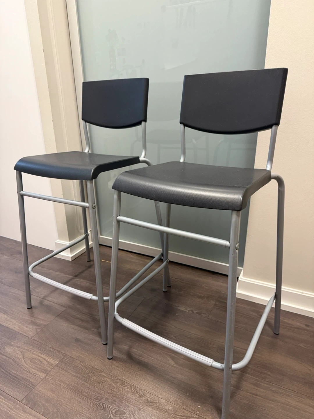 Selling a pair of IKEA Stig bar stools. They are in great shape and ready for a new home! The seat height is 63 cm (24 3/4") and the overall height is 90 cm (35 3/8").