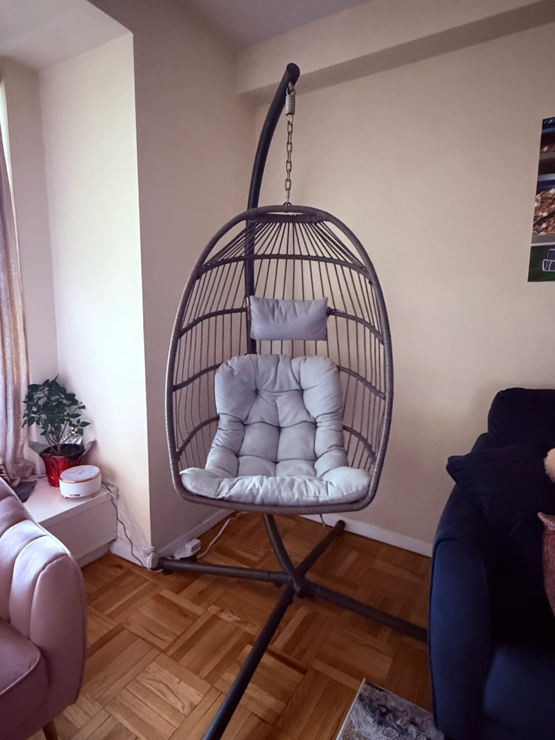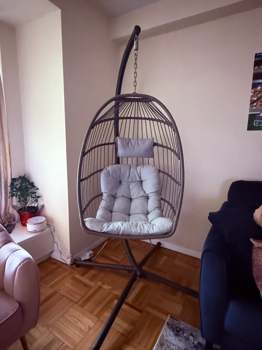 Hanging Egg Chair with Stand and Cushions