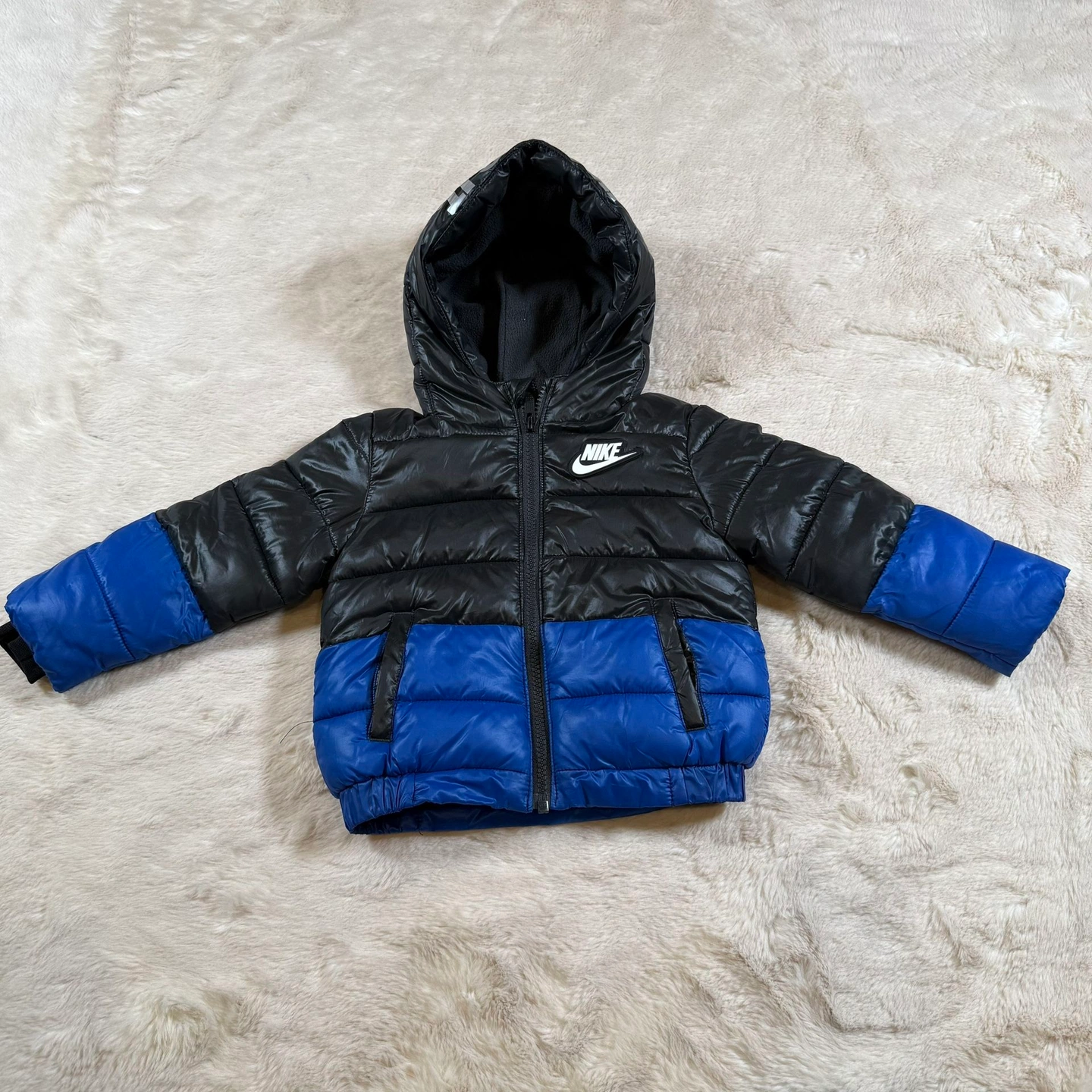 Nike Coat Toddler Boys 18 Months Puffer Jacket Black Blue Sportswear Colorblock Hooded