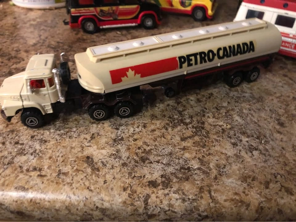 These toys are all in great condition. Some have a few dents and marks. The Petro Canada tanker has a bit of the red design that got ripped off from a sticker. Otherwise, they're great.