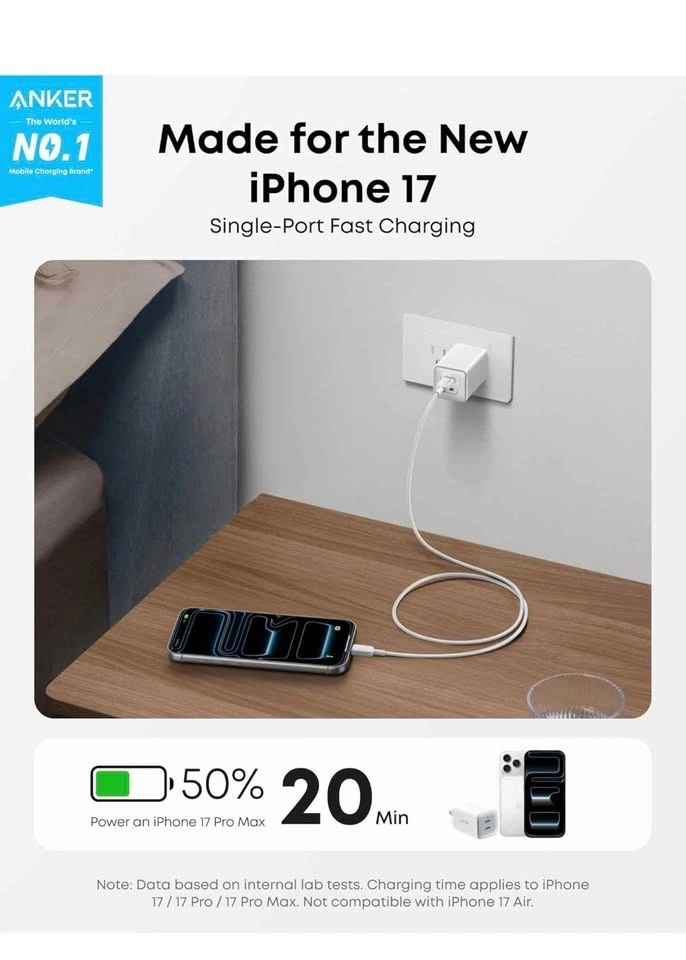 Anker 47W USB C Nano Charger, 2 Port Compact Foldable GaN Charge