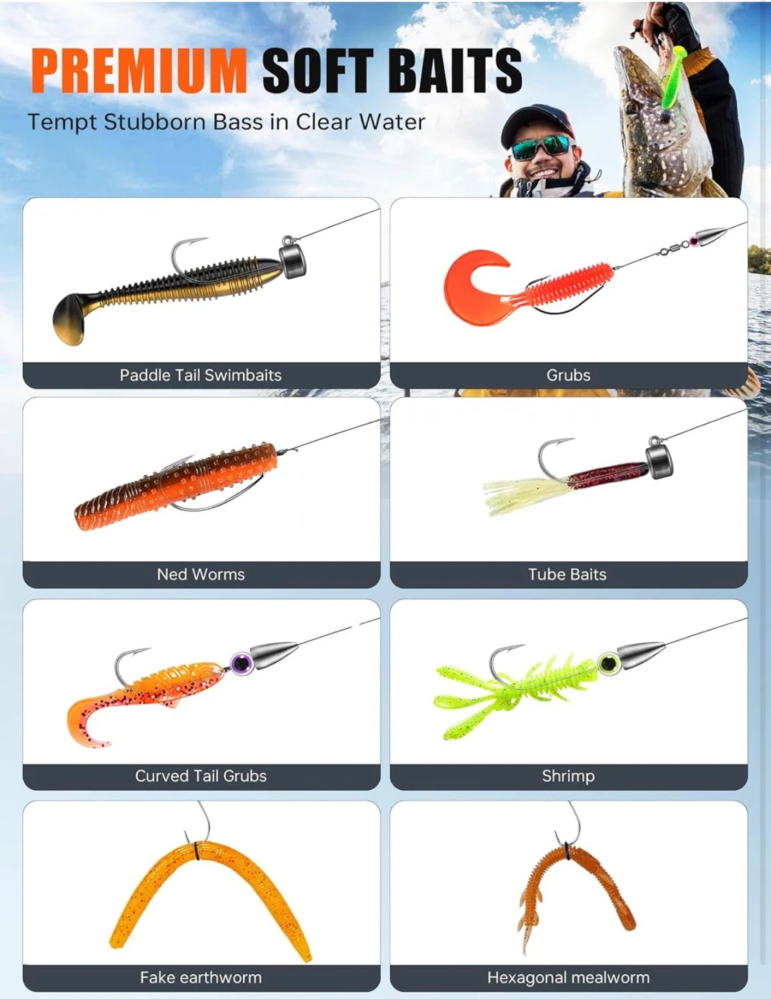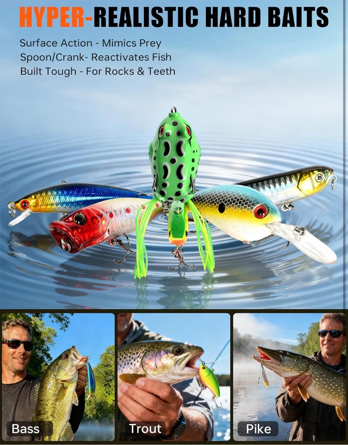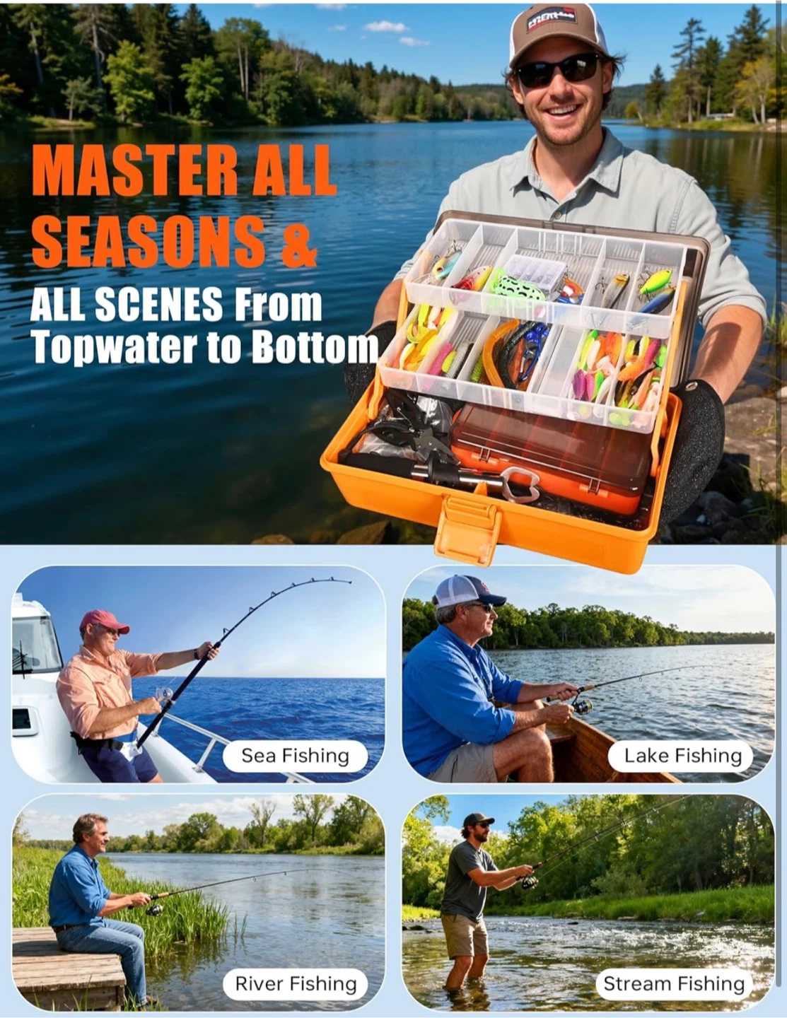 Large 3-Layer Fishing Tackle Box with Tackle Included, All-in-One 417 Pcs Fishing Lures Kit with Small 2-Sided Box & Gloves for Anglers, Complete Freshwater Bass Fishing Gear