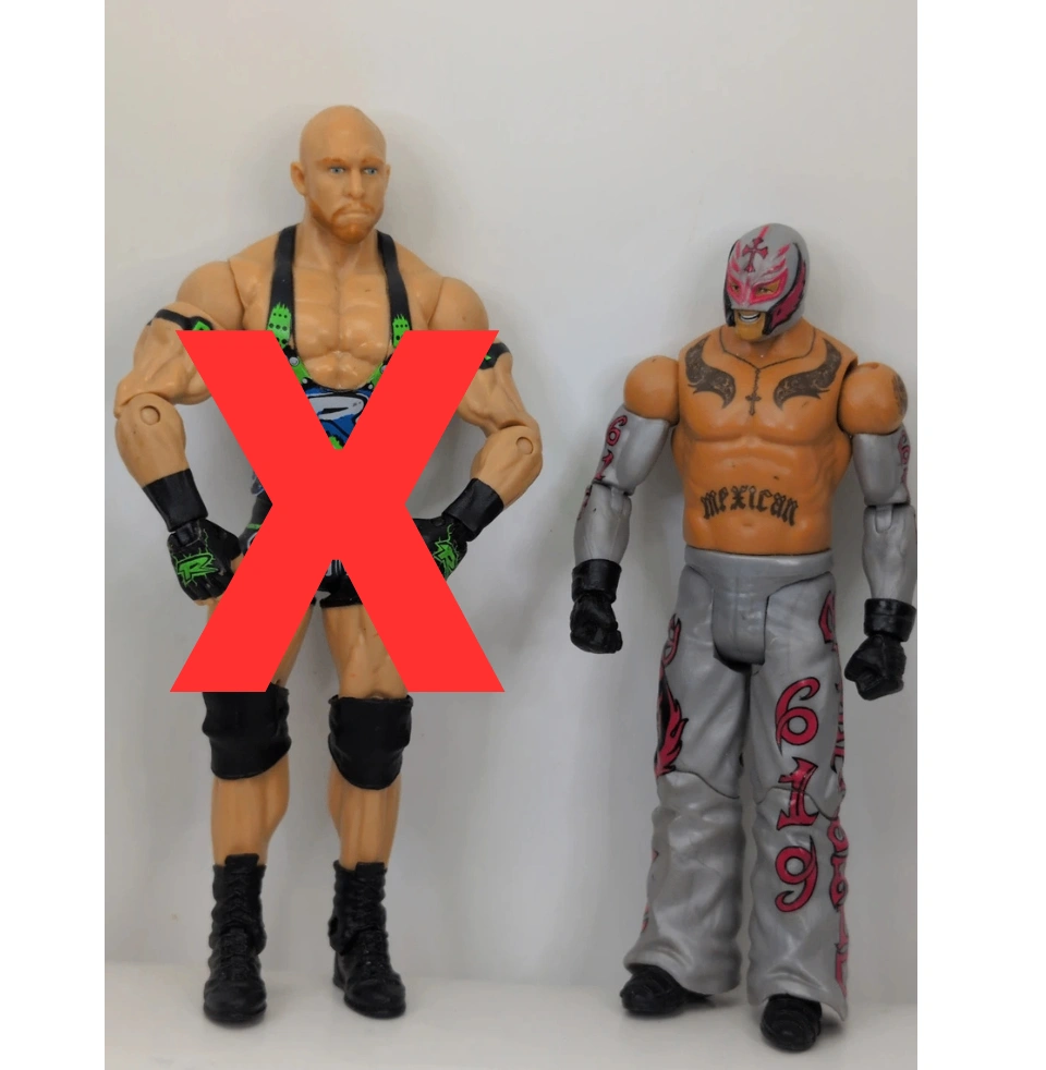 Two WWE action figures, one resembling Rey Mysterio and the other "Stone Cold" Steve Austin. They're articulated and ready for display or play. These figures capture the iconic looks of the wrestlers. (We offer Canada Post shipping) All item are clean and plastic wrap before shipping or pickup.