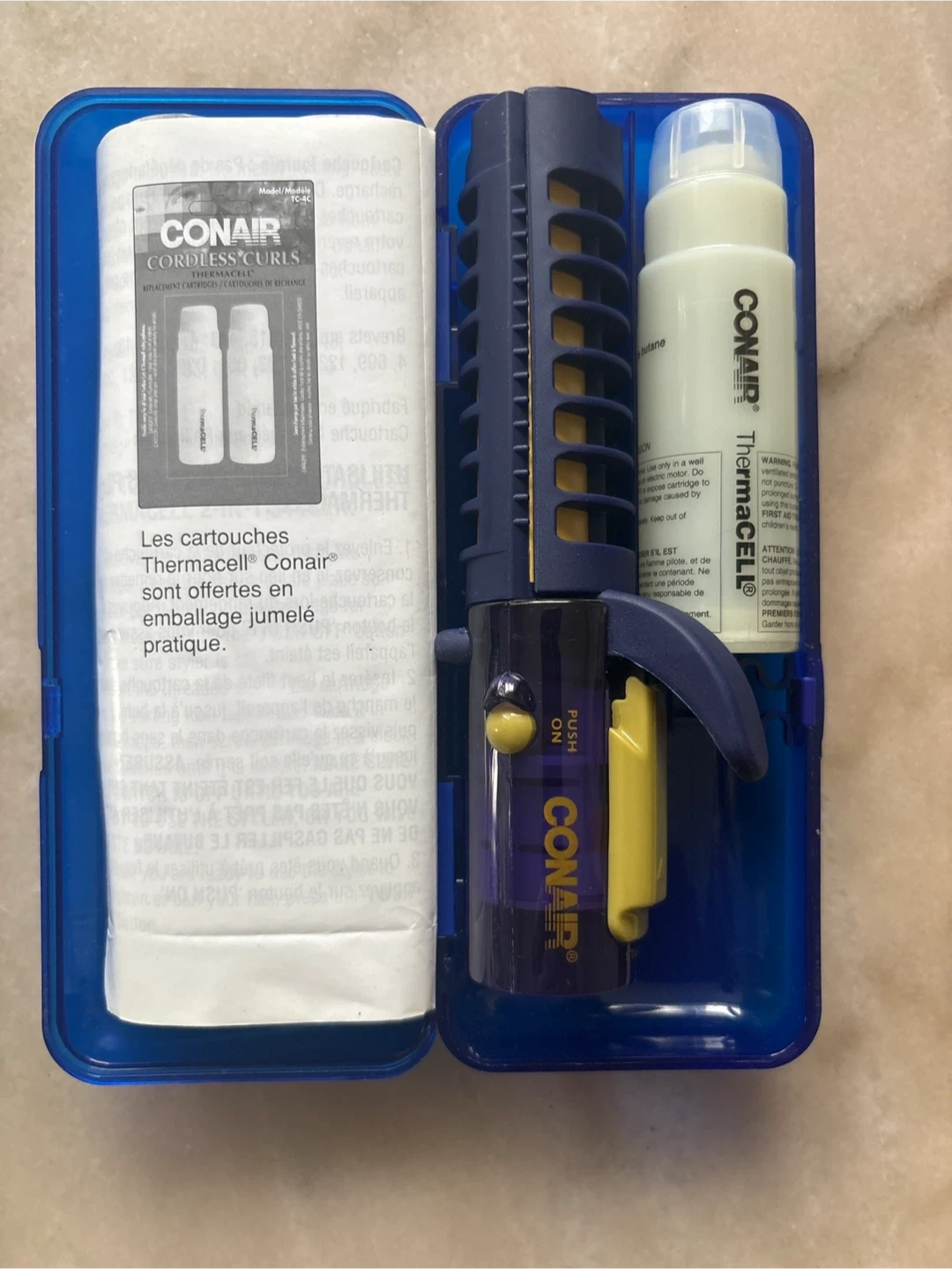 Selling a Conair Thermacell Cordless Curls kit, model TC-4C. It comes in a blue case and includes the Thermacell unit and replacement cartridges. Great for cordless styling!