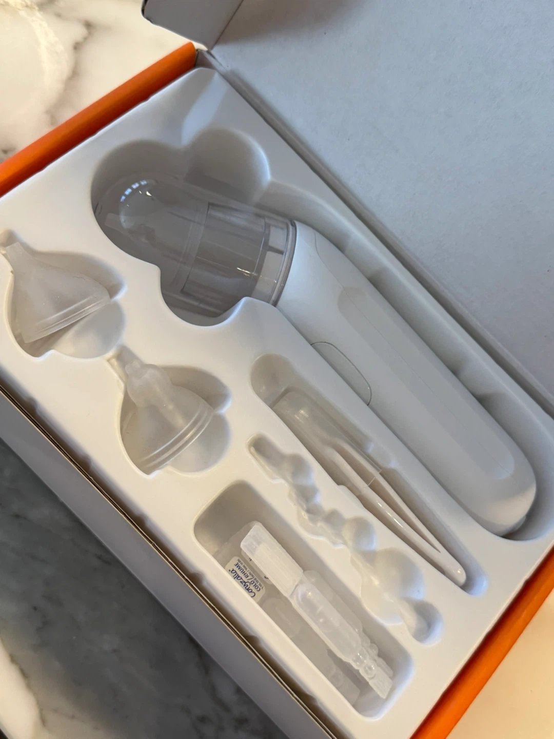 This is a Bololo brand electric nose sucker for babies. It comes with multiple attachments and a cleaning brush. It's designed for easy and gentle nasal clearing for little ones.
