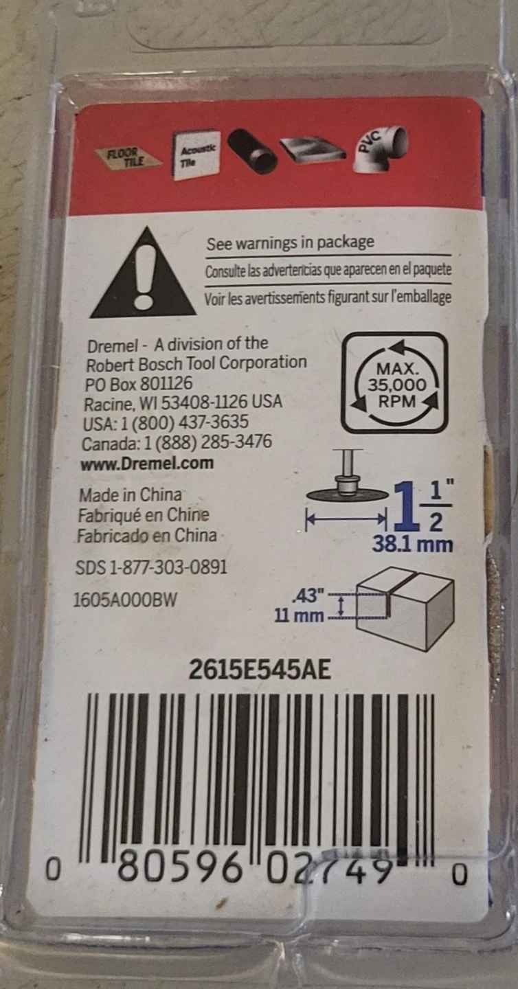 This is 3 single packs of Dremel EZ545 diamond cutting wheels. They're 1 1/2" (38.1mm) in diameter and are made for cutting. Use with EZ Lock system. Max RPM 35,000. $15ea or 3 for $30