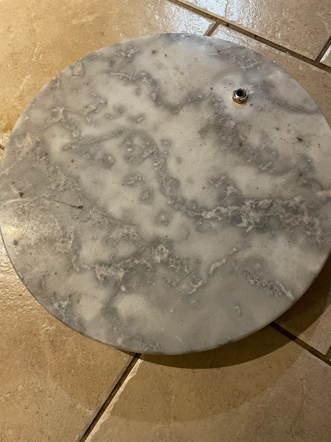 Add a touch of elegance to your dining experience with this used marble lazy Susan! The smooth, rotating surface makes sharing dishes a breeze, perfect for family dinners or hosting friends. While it shows signs of previous use, its timeless design and functionality remain uncompromised. It's a stylish and practical addition to any table setting.