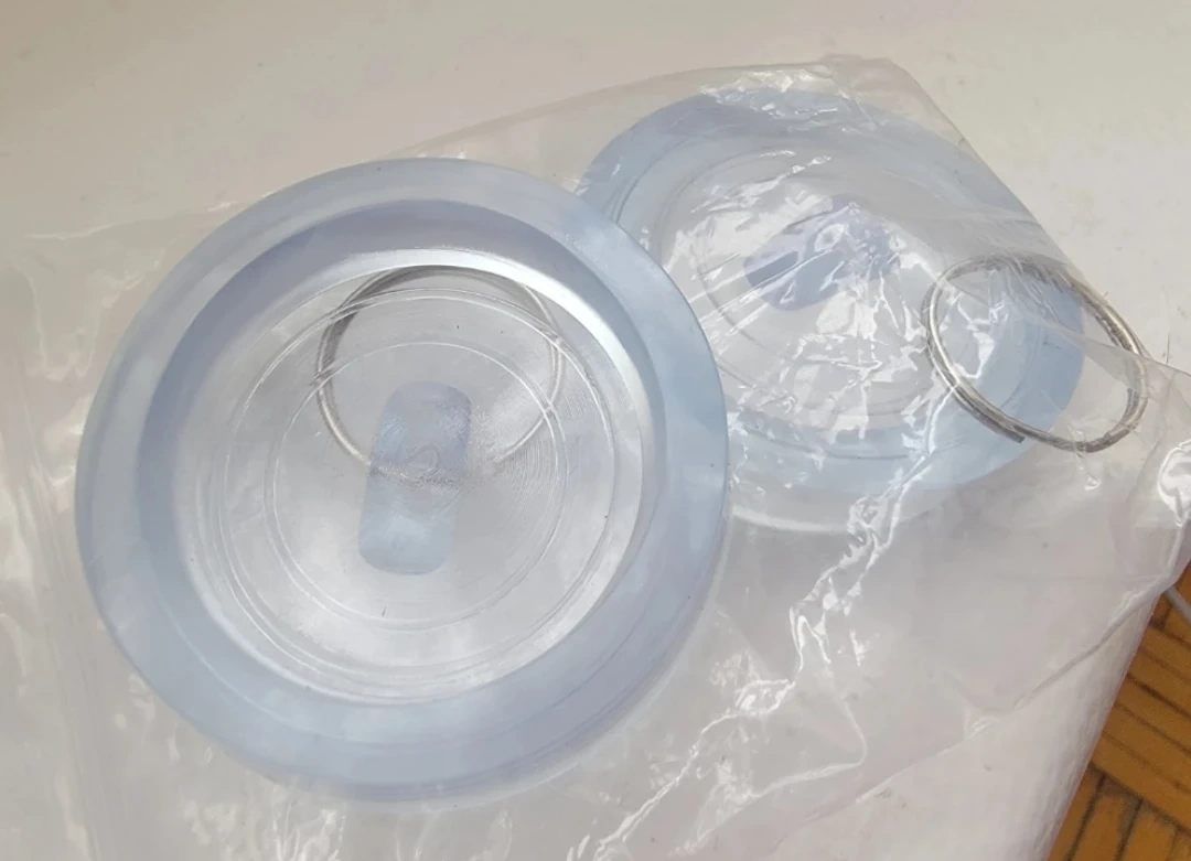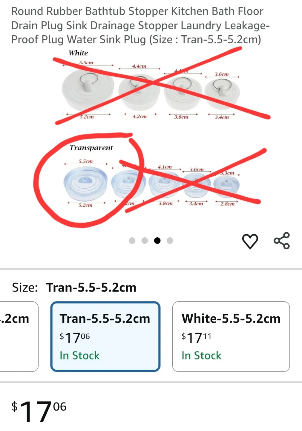 Selling a transparent bathtub drain plug. The size is Tran-5.5-5.2cm. It's a round rubber stopper that can be used in the kitchen, bathroom, or laundry room. It helps prevent leakage and drain water effectively!