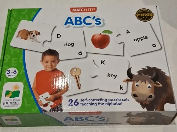 This set includes 26 self-correcting puzzle sets designed for teaching the alphabet. Recommended for ages 3-6 years.