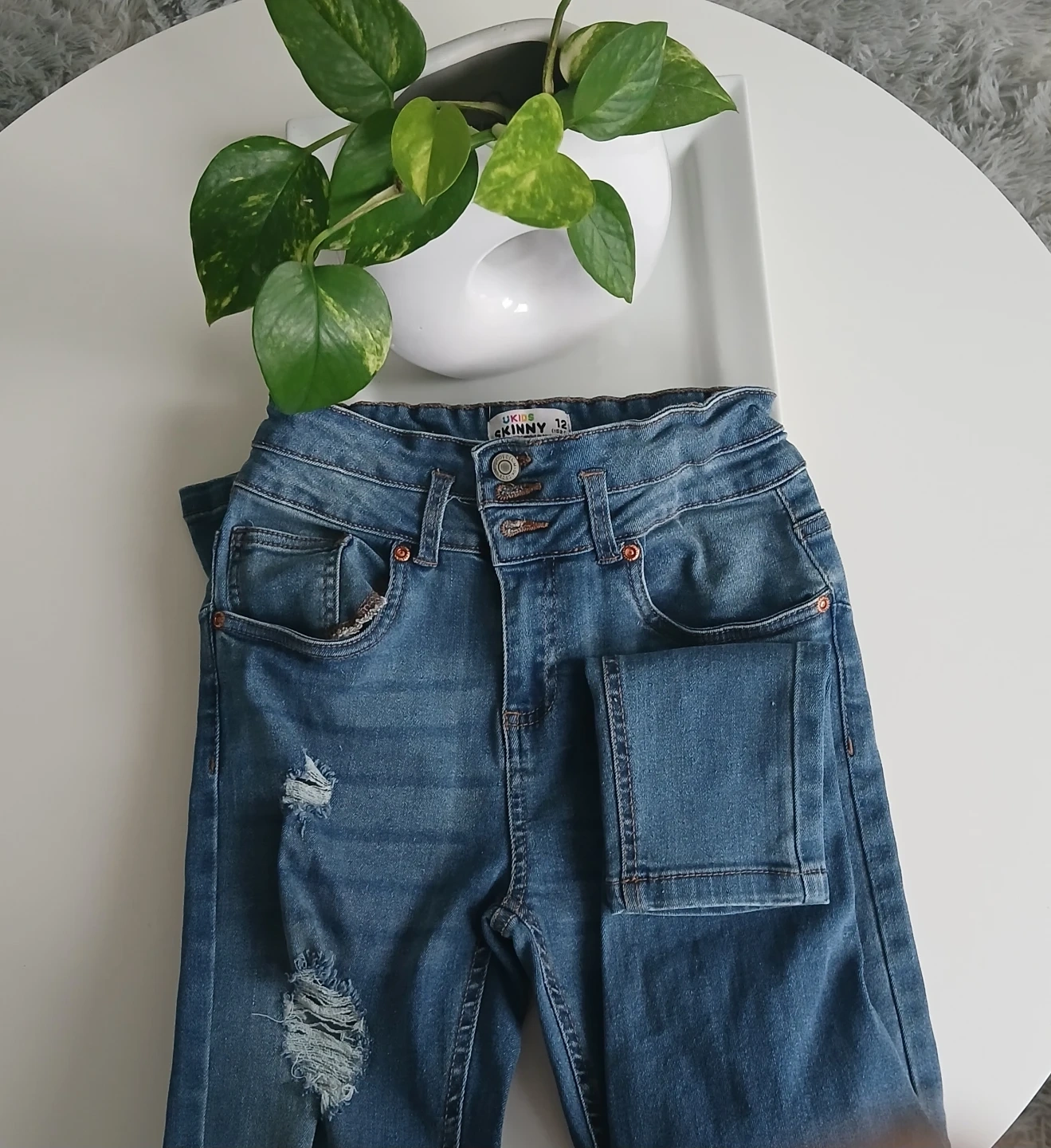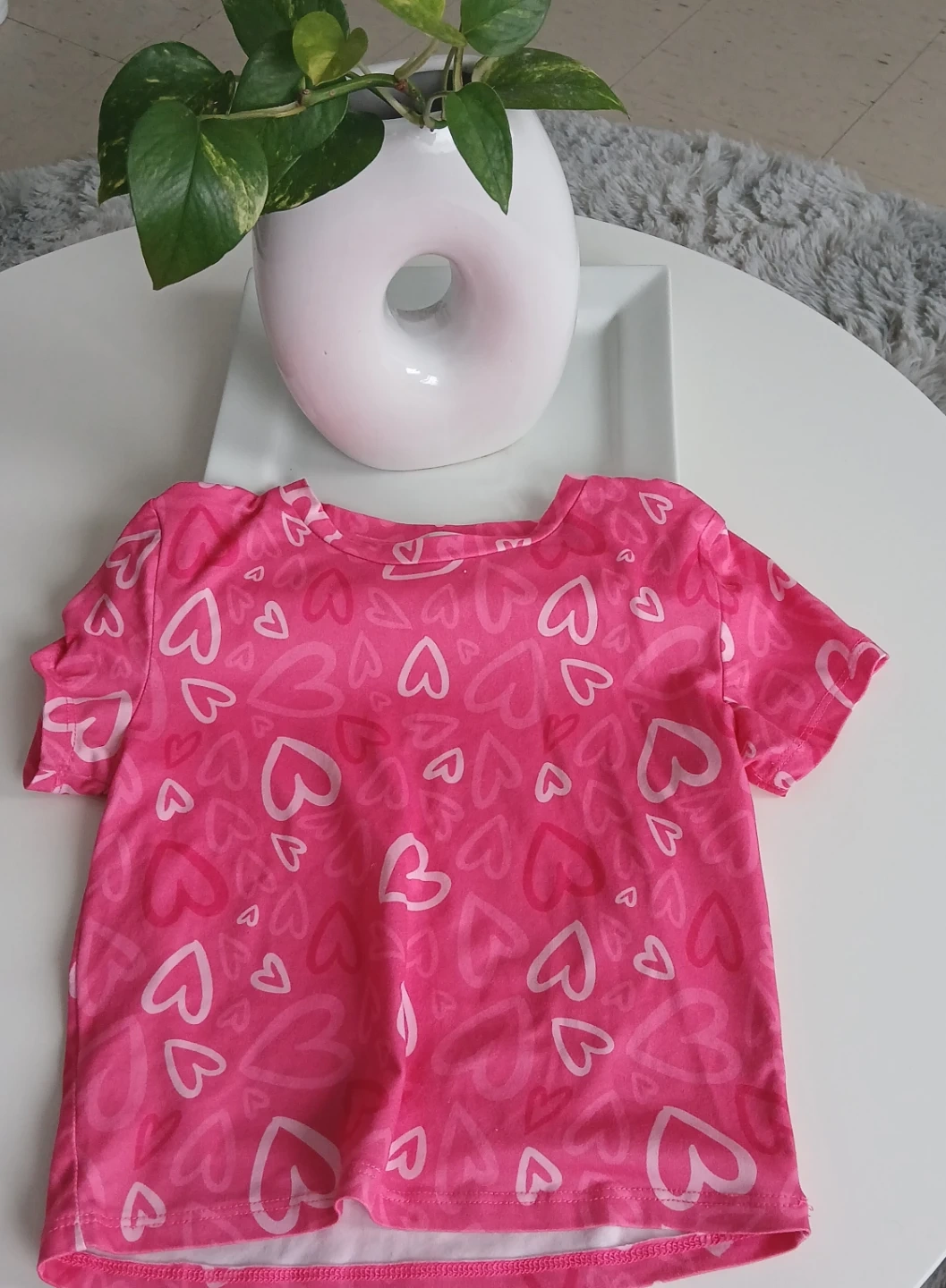 Kids Pink Heart Print T-Shirt and Blue Distressed Jeans Size 12