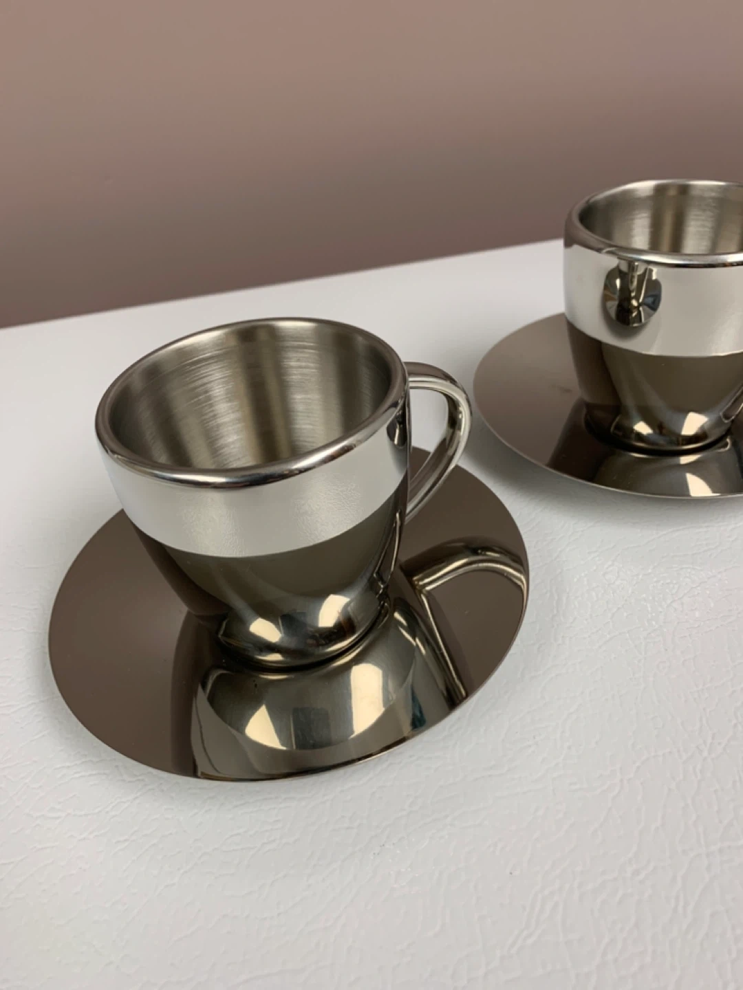š„Set of 2 Stainless Steel Espresso Cups with Saucers