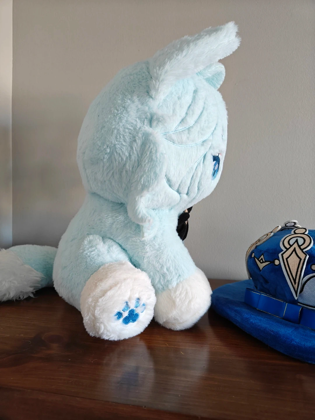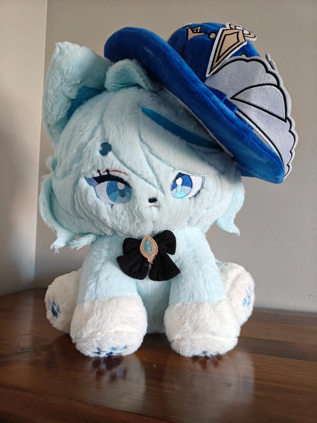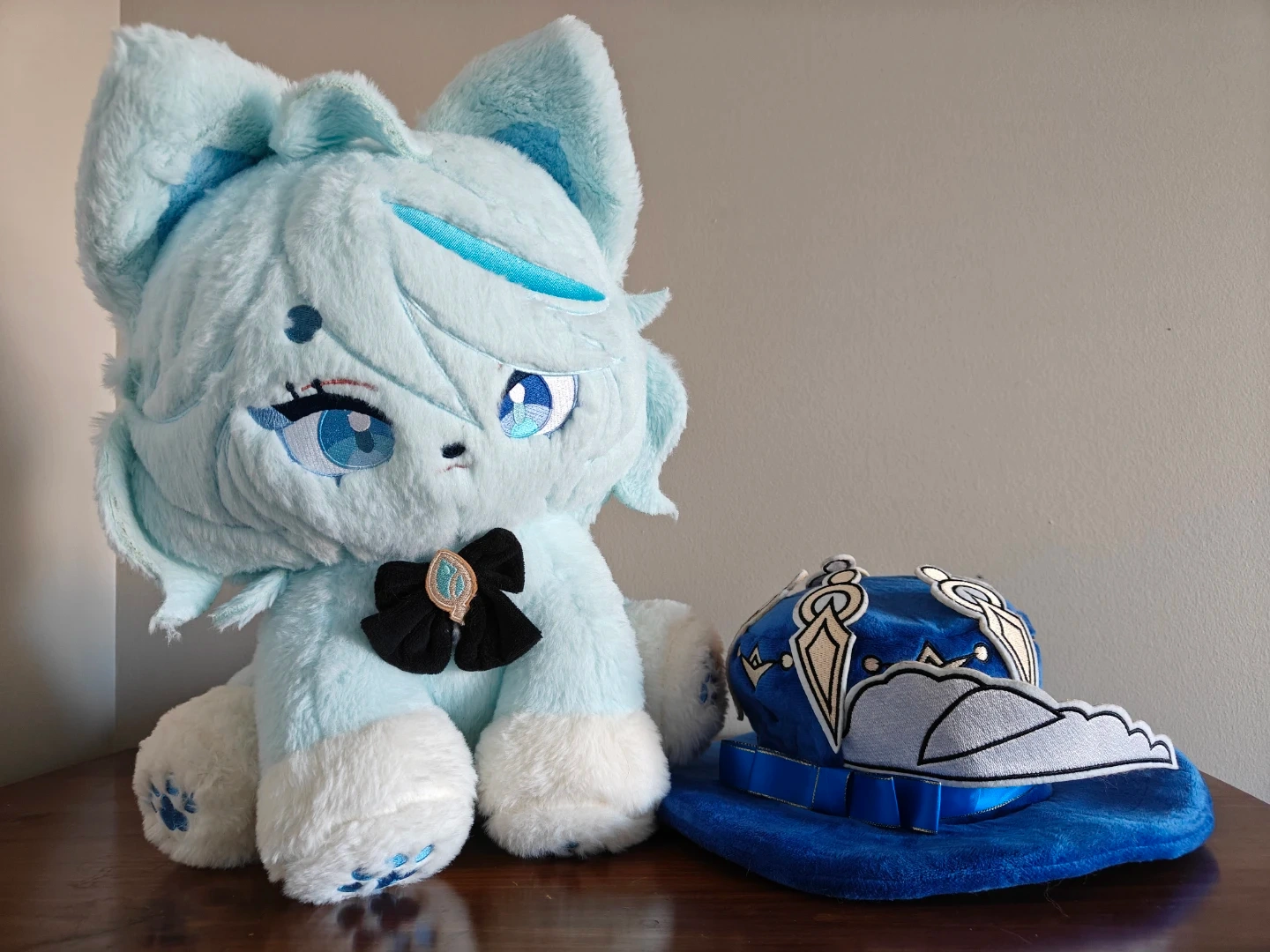 Furina cat plush from Genshin Impact. She was kept as a display cat in my plush collection. I removed the neck scruff that was initially there. From a smoke-free, cat-friendly home (please be aware if you have allergies).