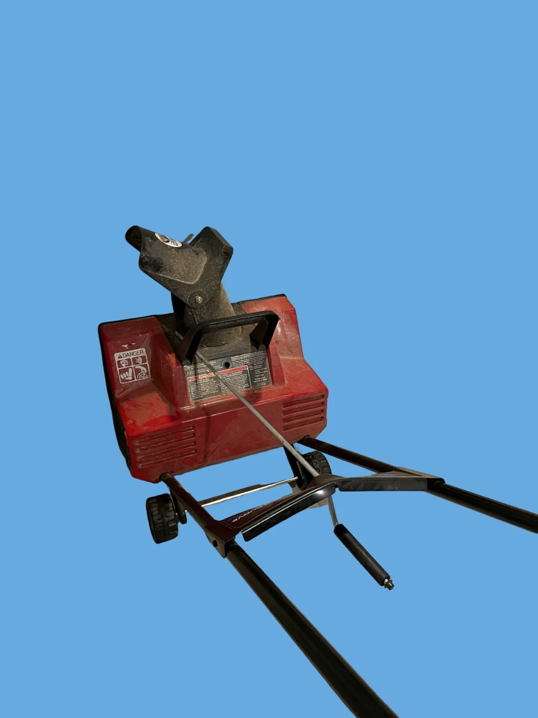 Toro Power Curve 1800 electric snow blower. Model 38025. Red and black plastic construction. This snow blower is ideal for clearing sidewalks and driveways. Needs power cord.