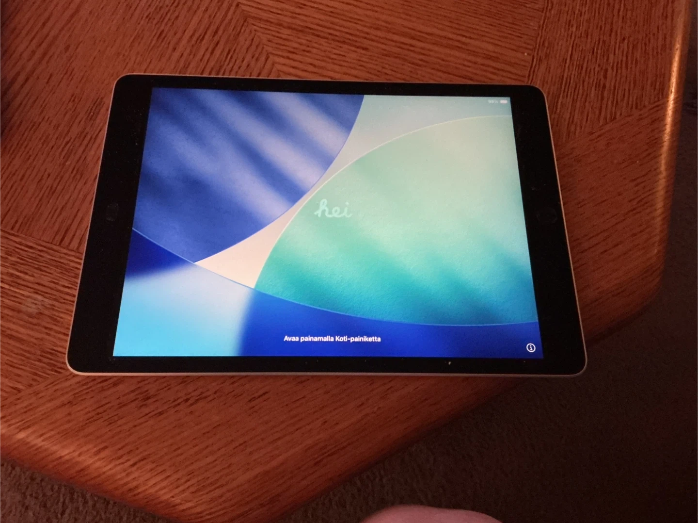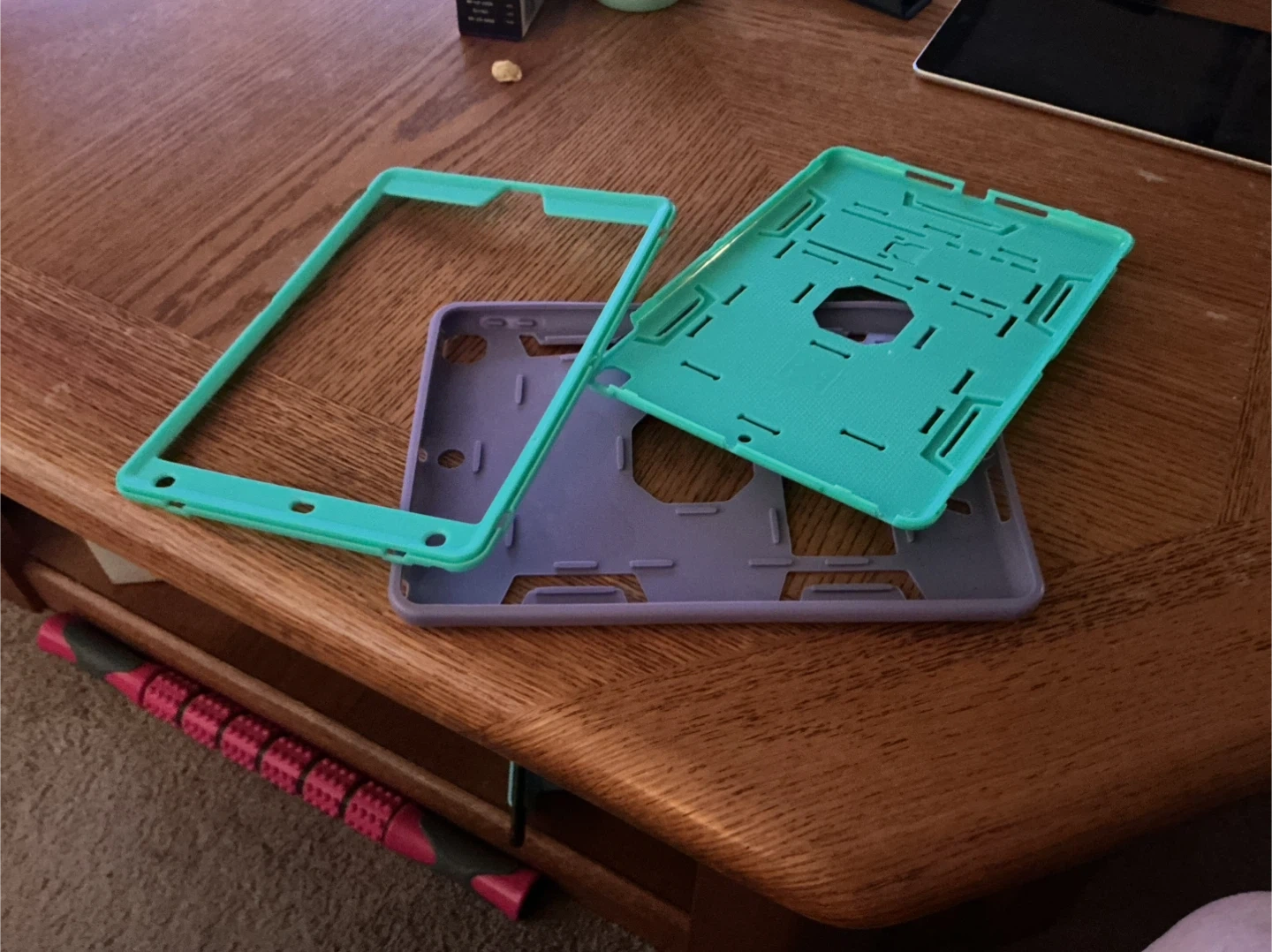 This is an Apple iPad tablet. It comes with a teal and purple protective case. The tablet is in good working condition.