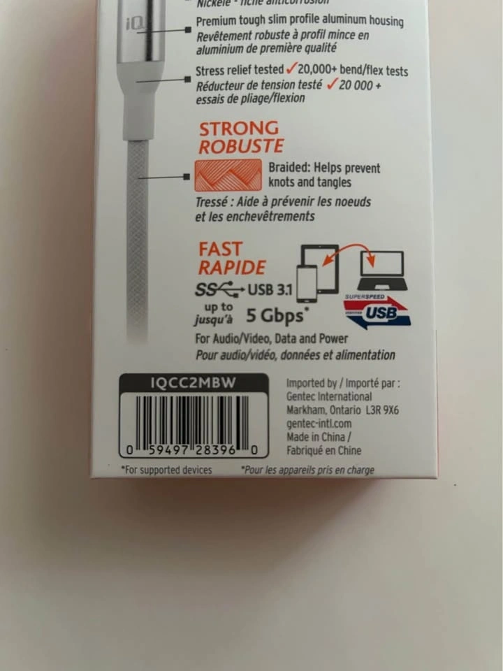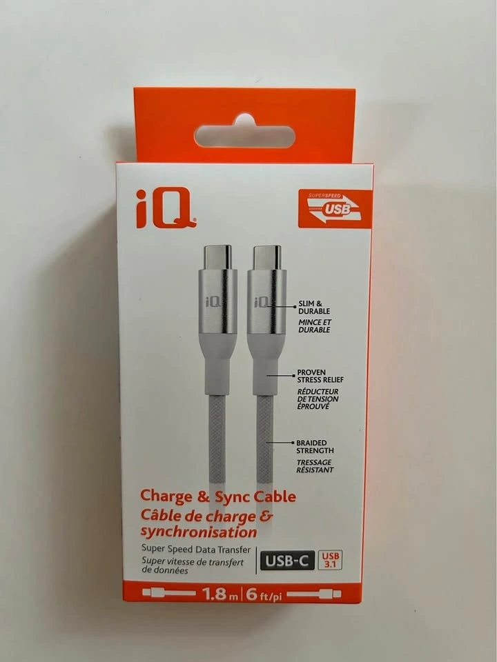 Brand New in Sealed Box iQ USB Type-C to Type-C Cable - Braided - 1.8m/6ft. Retail $30. Public meet Warden and 16th avenue area in Markham. Cash only please. This offers effortless connectivity and rapid data transfer in a durable, stylish package. Designed for high performance and long-lasting use, this cable is perfect for all your USB-C devices at home, at work, or on the go. Durable Design: Elegant braided finish prevents knots and tangles, ensuring a long-lasting and reliable connection. High-Speed Data Transfer: USB 3.1 technology supports data transfer speeds up to 5 Gbps, perfect for audio, video, data, and power.