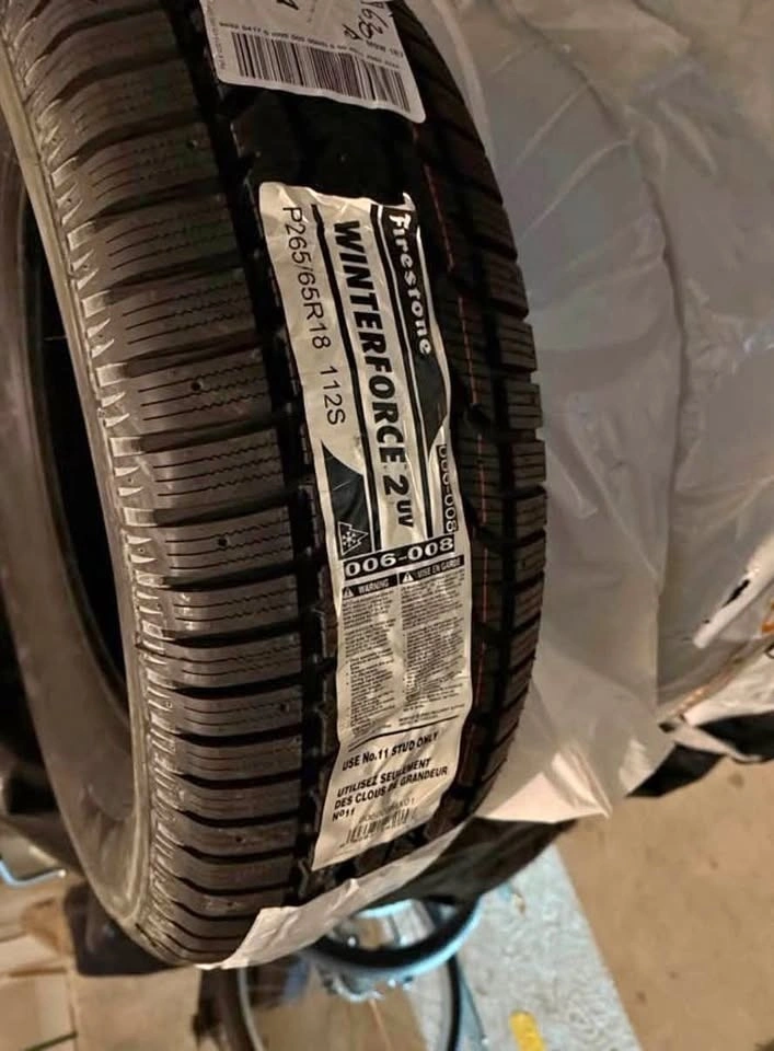 Single brand new Firestone winter tire. Never used and in perfect condition. Tire size: 265/65 R18. Brand: Firestone. Winter tire. Brand new – never used. No damage, no repairs. Stored properly. Ready for immediate pickup. Ideal as a replacement or spare. Available immediately. Pickup only. First come, first serve. No holds without payment. Part of an everything‑must‑go sale. Best price already — serious buyers only.