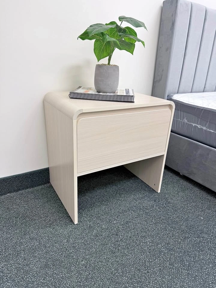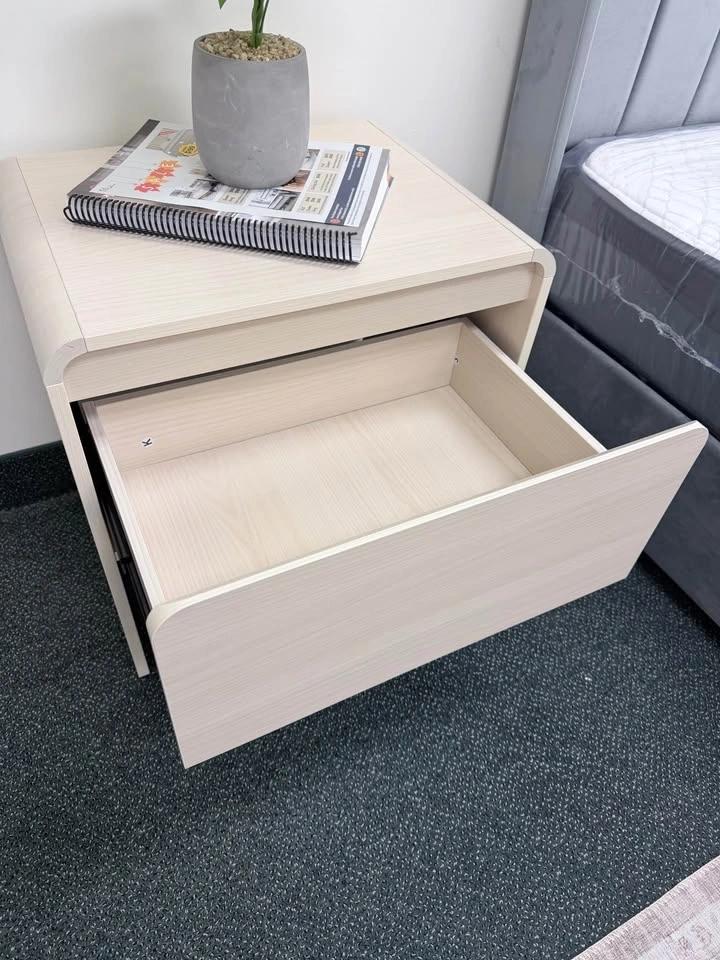 Brand new in box. Sleek and modern nightstand with a smooth curved design that adds a clean, stylish look to any bedroom. Features a spacious soft-close drawer for quiet, easy use and a handle-free front for a minimalist finish. Compact, sturdy, and perfect for keeping your essentials organized. Soft-close drawer, Modern curved design, No-handle clean look, Easy assembly (tools & instructions included). Great quality at an affordable price — ready to upgrade your space!