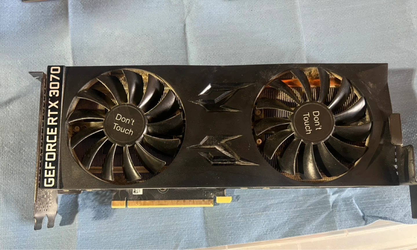 This is an Nvidia GeForce RTX 3070 graphics card. It's a high-performance component for gaming PCs. Includes multiple display outputs for connecting monitors.