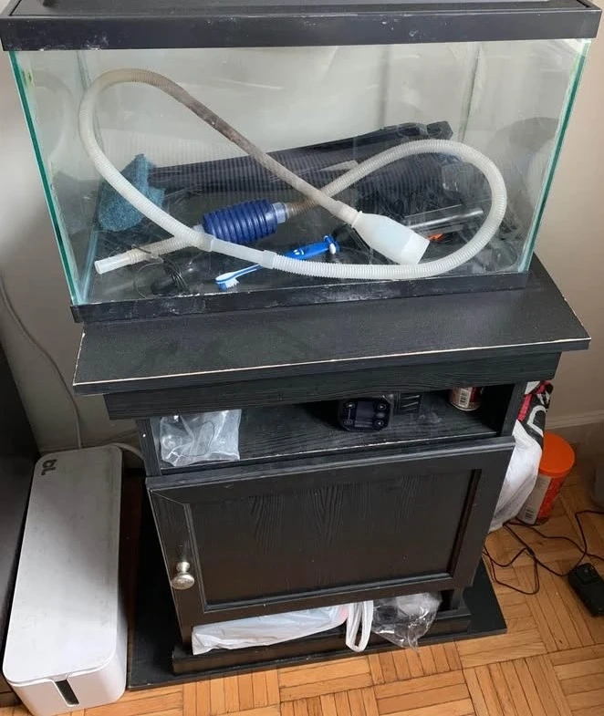 The tank has no lid. 10 gallon Aqueon Open Glass Tank. ($15)