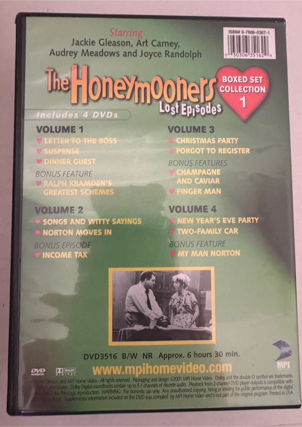 “The Honeymooners - Lost Episodes” 5 Box DVD Set. Each box includes 4 DVDs in new or like new condition for total of 20 DVDs. Many never played. Hours of vintage entertainment! See priced away at $16 per box set ($80 total for all).