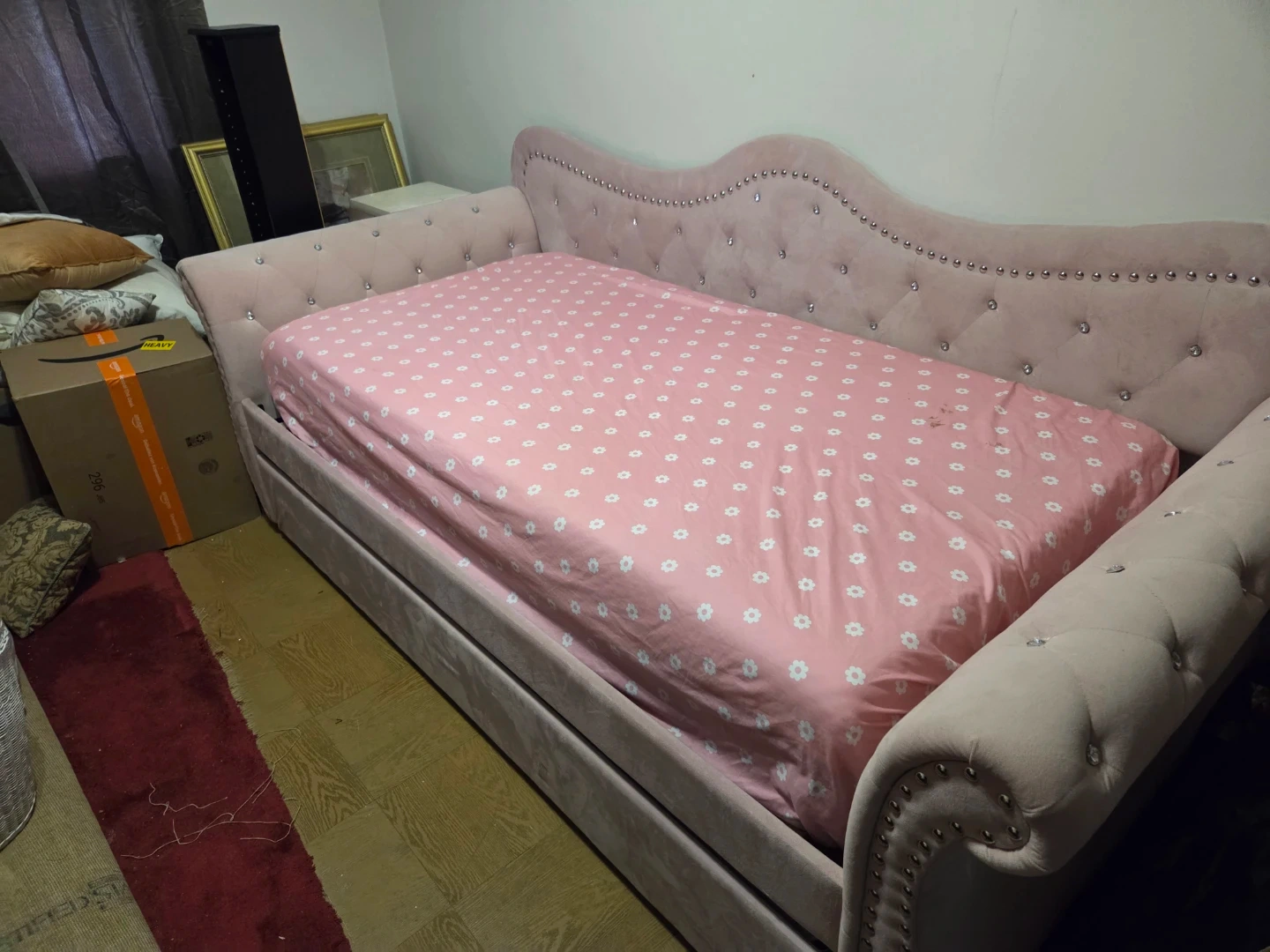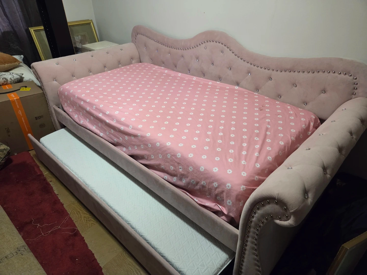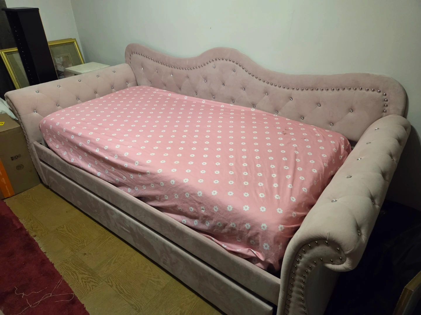 Pink Velvet Daybed with Trundle