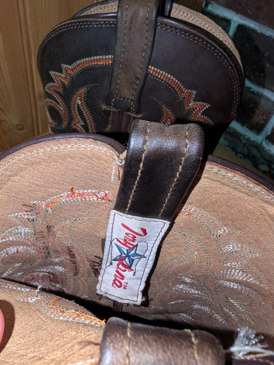 Tony Lama western cowboy boots crafted from brown leather. These stylish boots feature intricate stitching details. They're perfect for adding a touch of Western flair to your outfit.