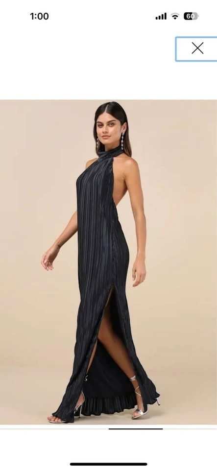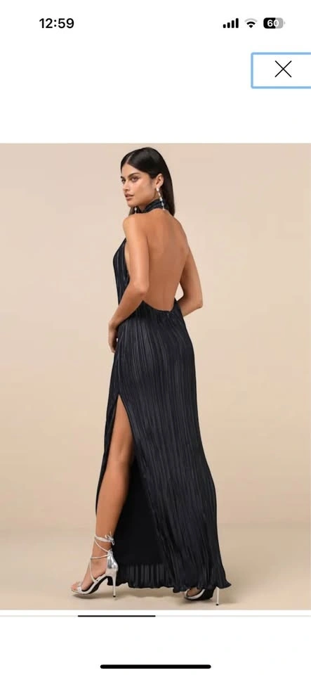 XS Lulus Gwenny Dark Navy Satin Plisse Maxi Dress