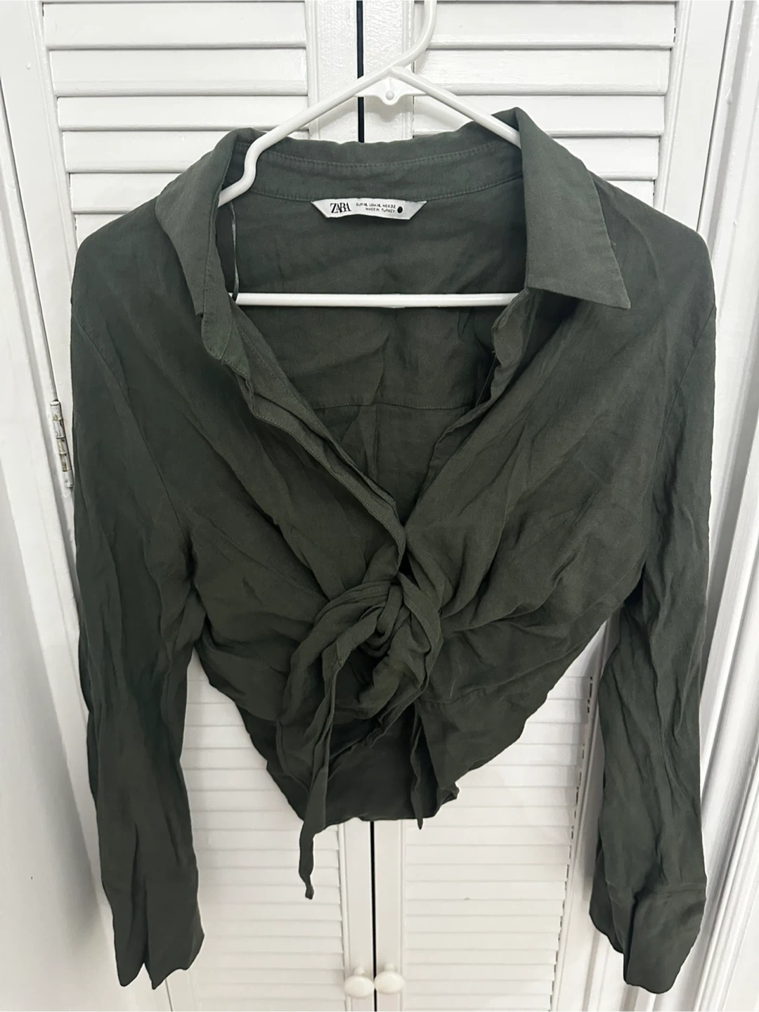 ZARA Olive Green Knot Front Blouse