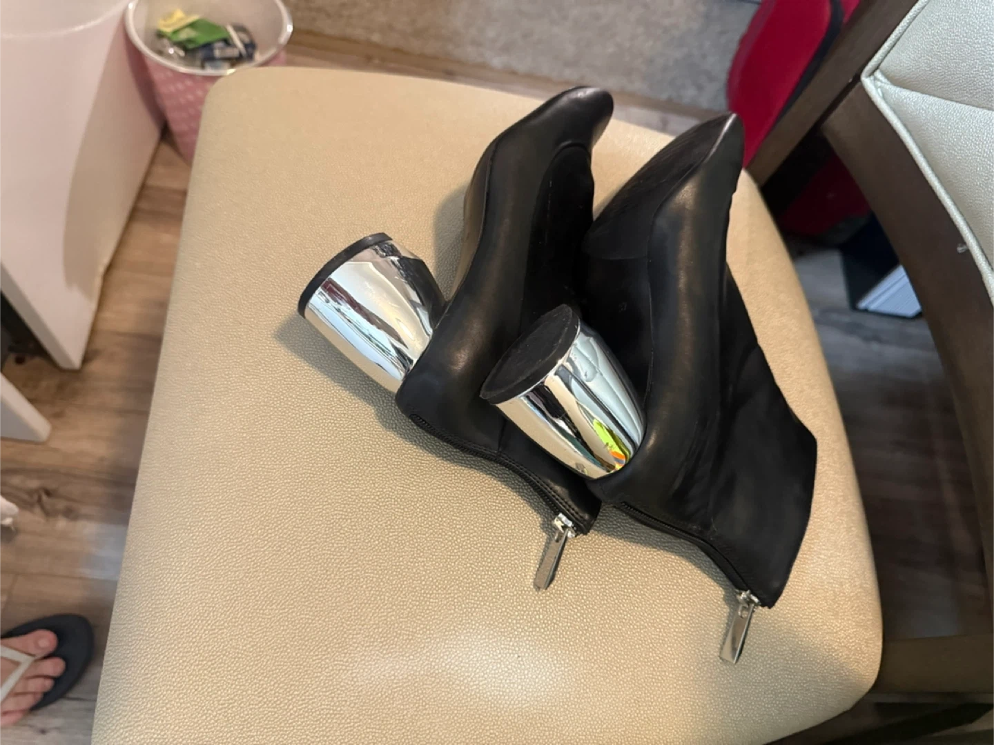 ZARA Black Ankle Boots with Silver Heel