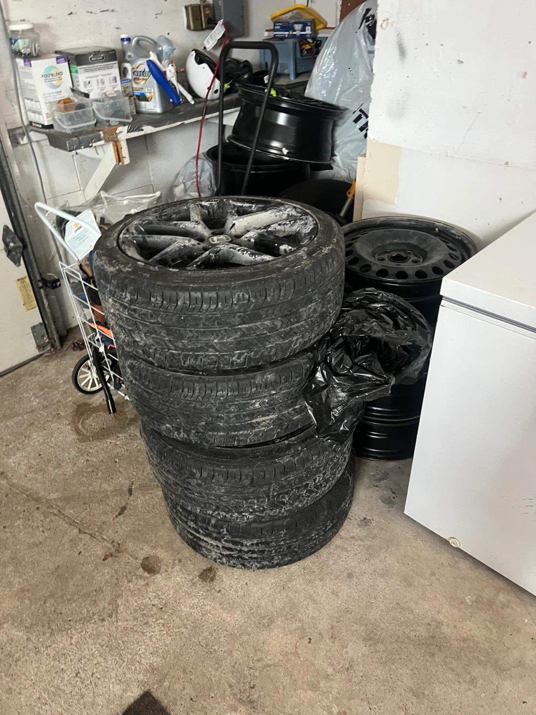 Selling winter tire four Honda alloy wheel with a tire. It's a 17-inch wheel. The tire is a Goodyear Eagle Sport.It's off a Honda Civic.