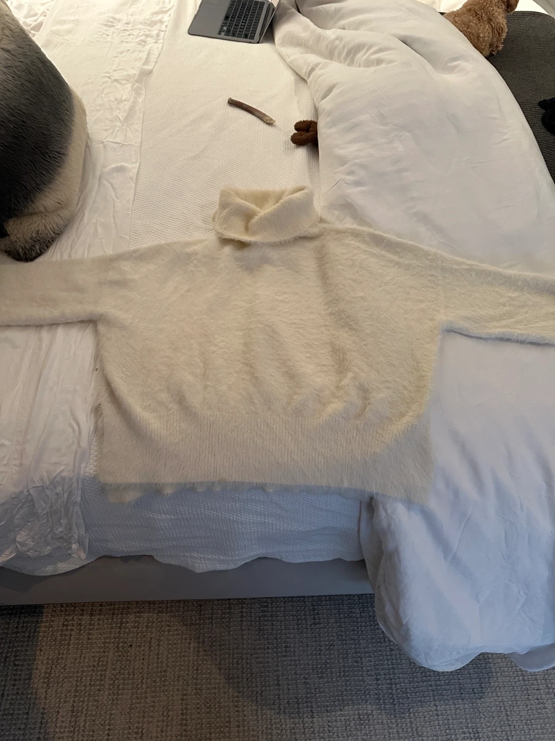 Bella Dahl Cream Fuzzy Turtleneck Sweater