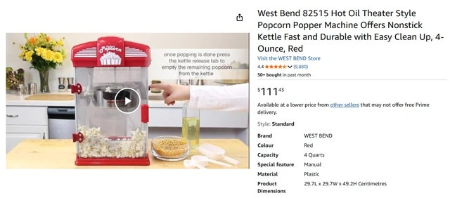 West Bend 4QT Movie Theater Popcorn Machine