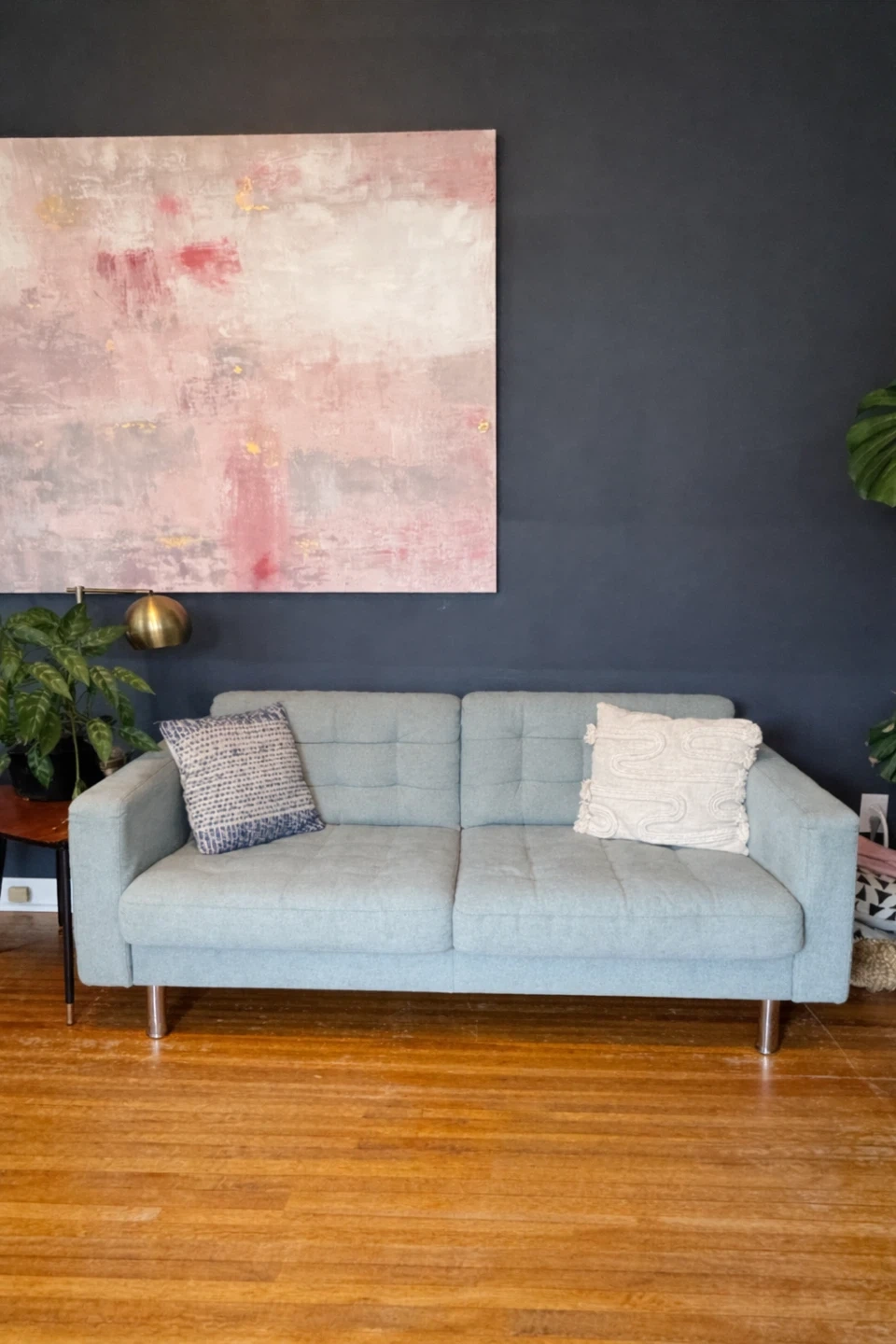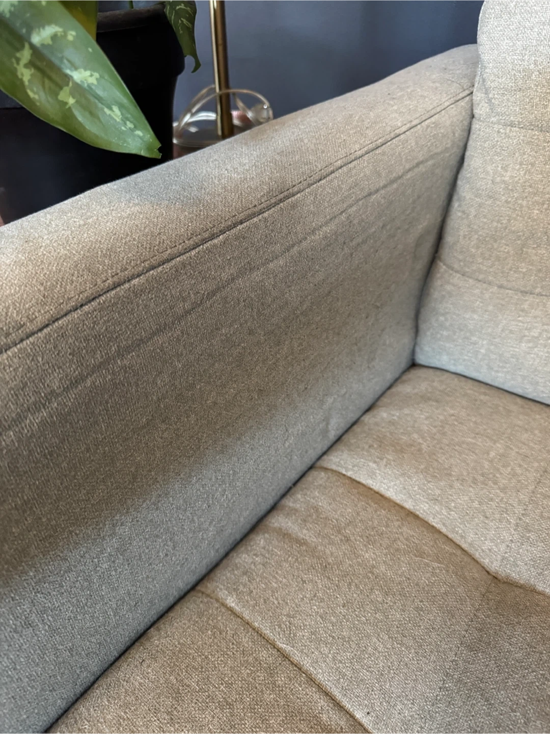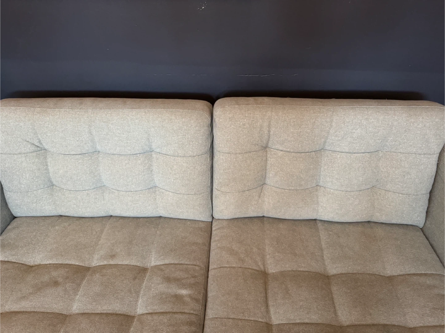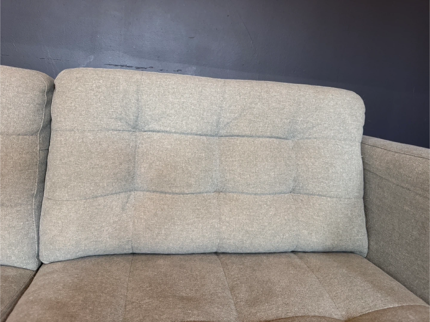 Sofa is in excellent condition with some minor wear on cushions. In smoke-free home with pets (dogs). Scroll through photos to see condition of cushions.